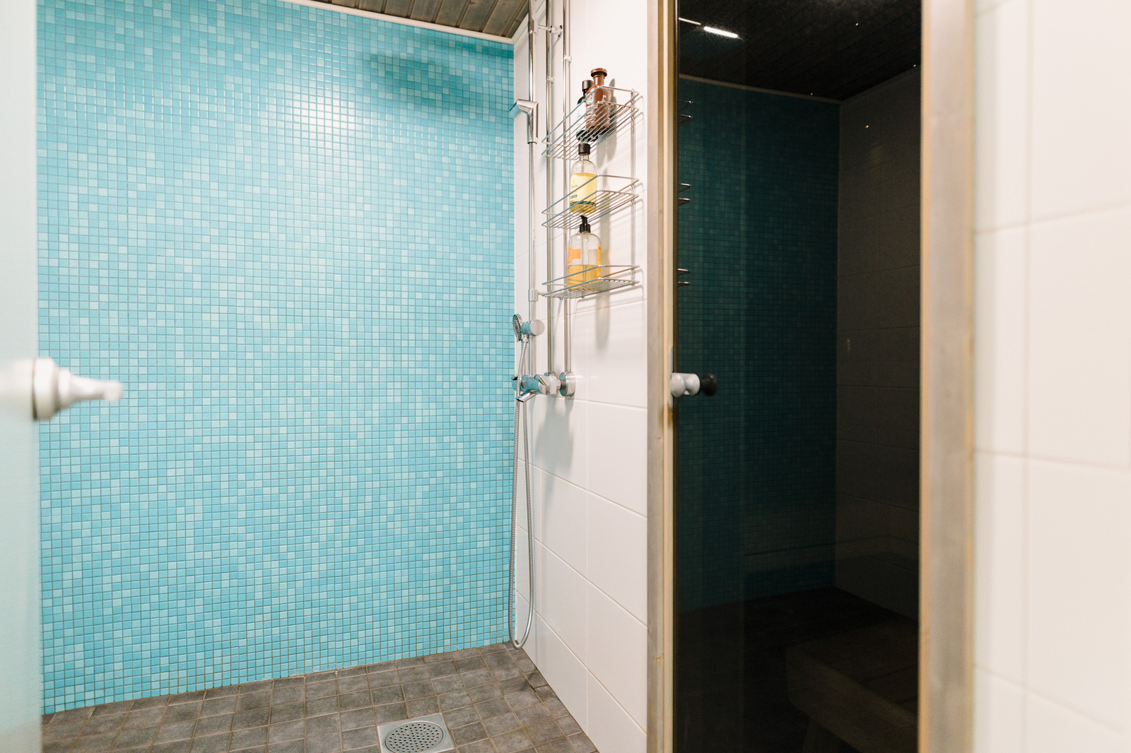 | Saunan kuvaus | Seinät (puu), lattiat (laatta), Sähkökiuas |