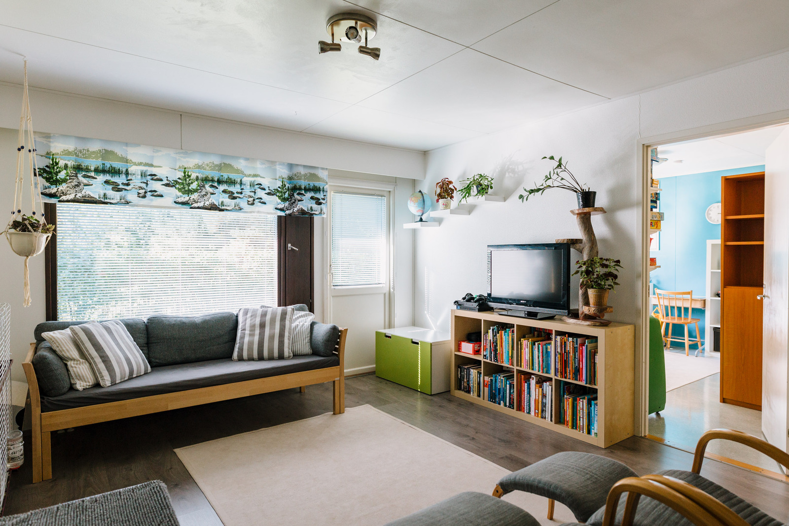 | Olohuoneen kuvaus | Seinät (tapetti ja maali), lattiat (laminaatti) |