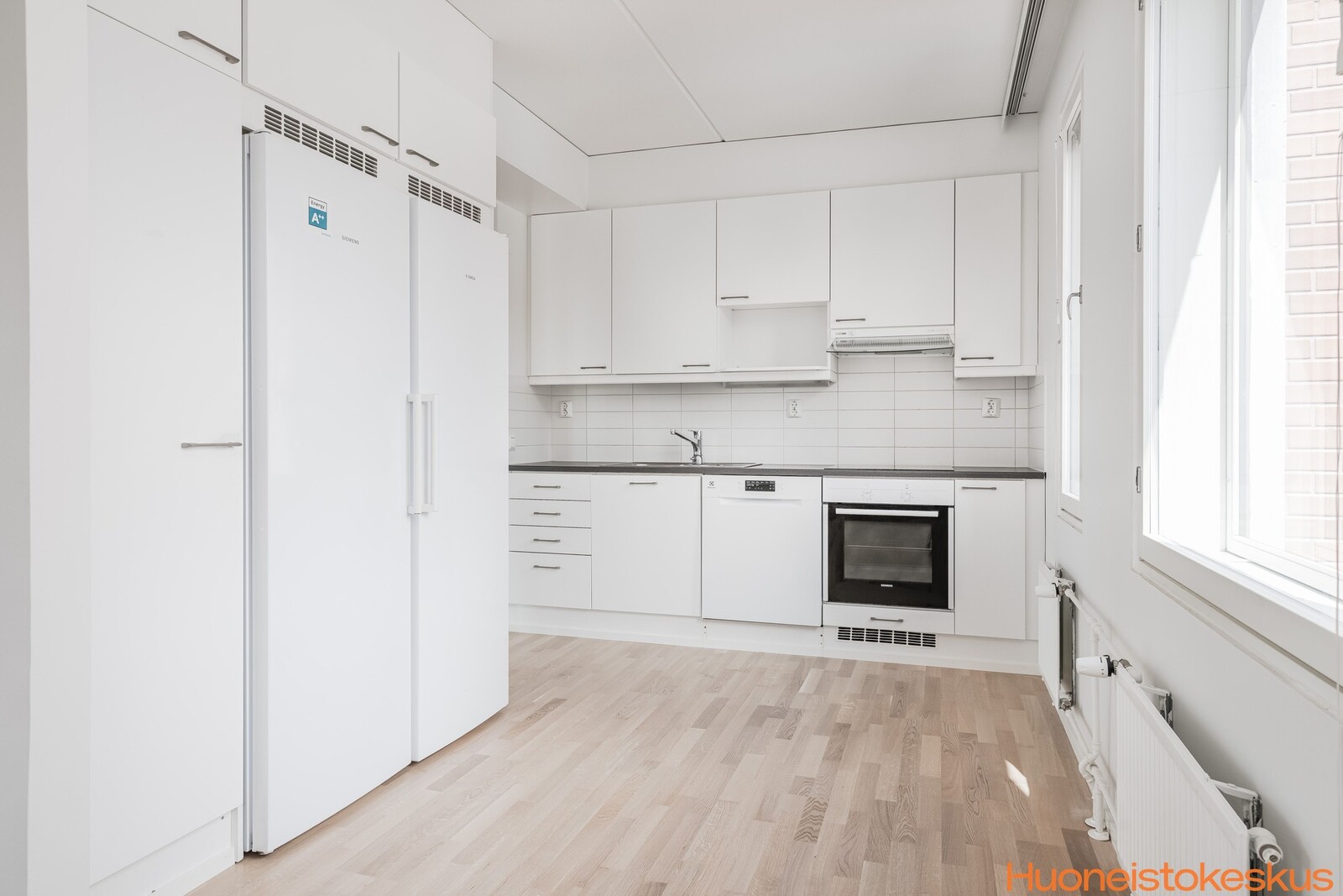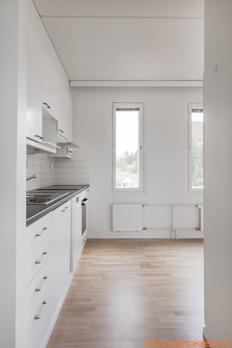 | Keittiön kuvaus | Liesi (liesitaso, erillisuuni), työtasot (laminaatti), seinät (maali), lattiat (parketti), erillisuuni, erillinen pakastin, astianpesukone, jääkaappi ja liesitaso, liesituuletin / hormi |