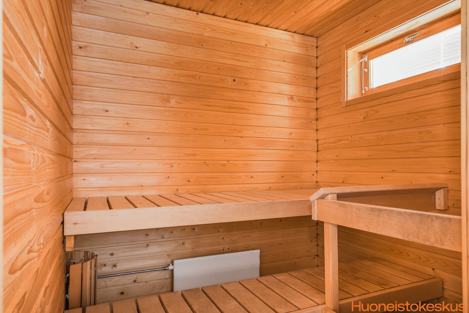 | Saunan kuvaus | Seinät (puu), lattiat (laatta), Sähkökiuas |