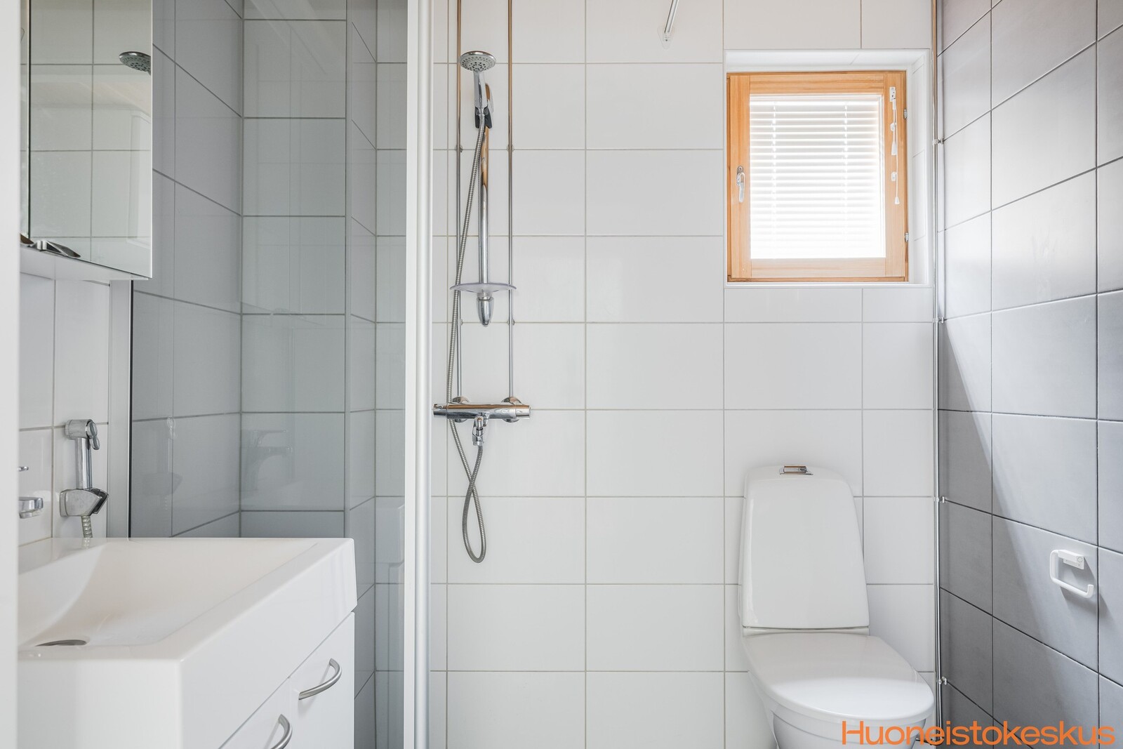 | WC-tilojen kuvaus | Lattialämmitys, suihkuseinä, suihku, pesukoneliitäntä ja bidee-suihku, seinät (Kaakeli), lattiat (Laatta) |