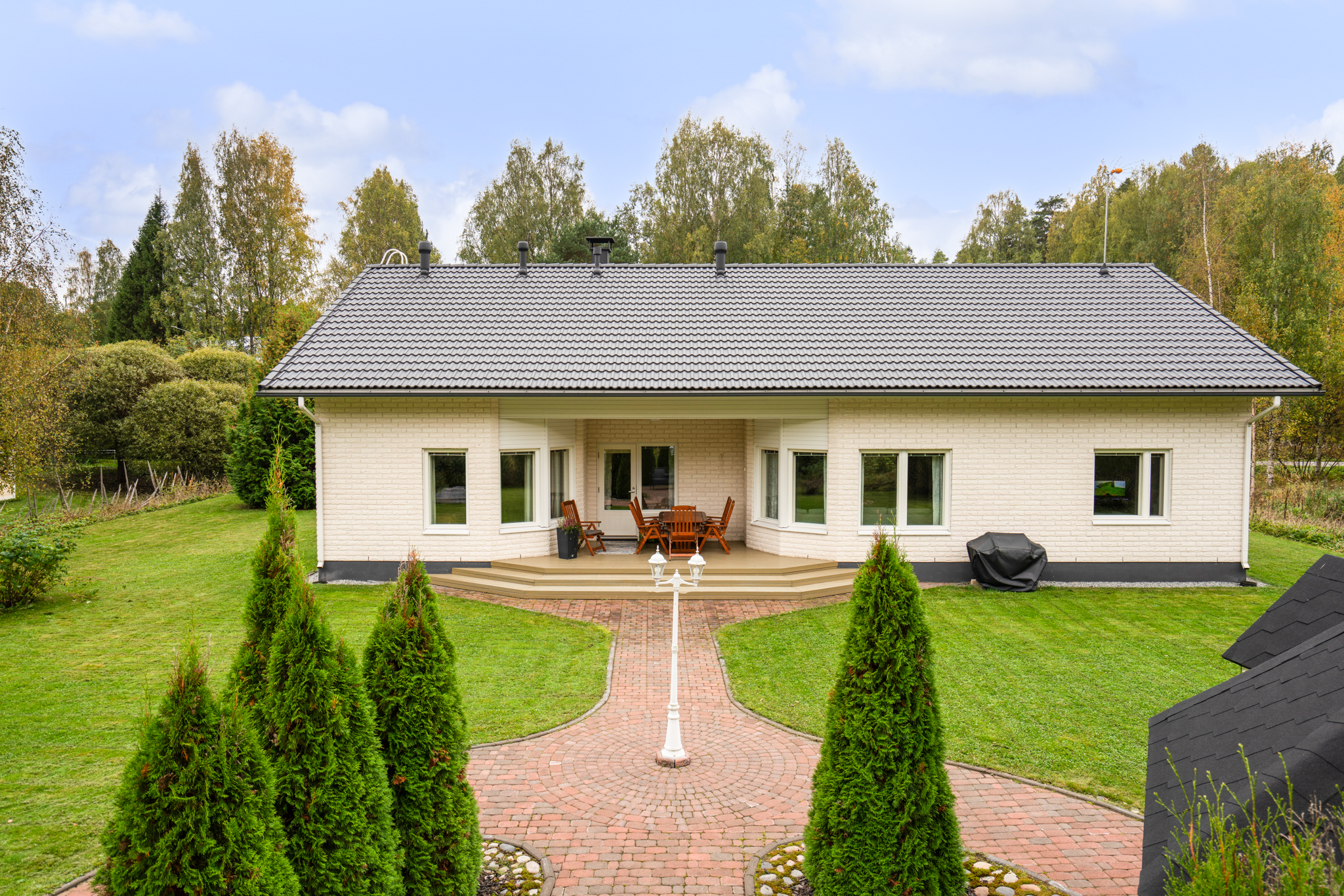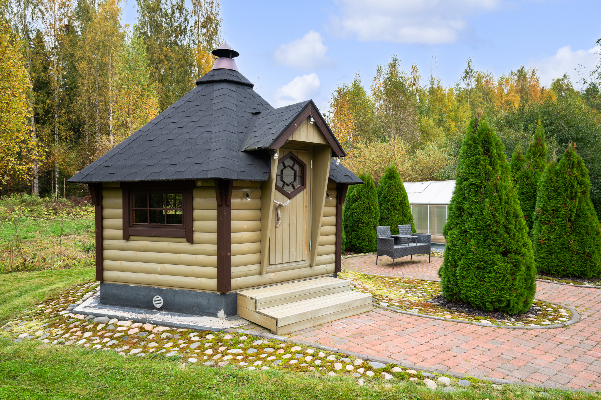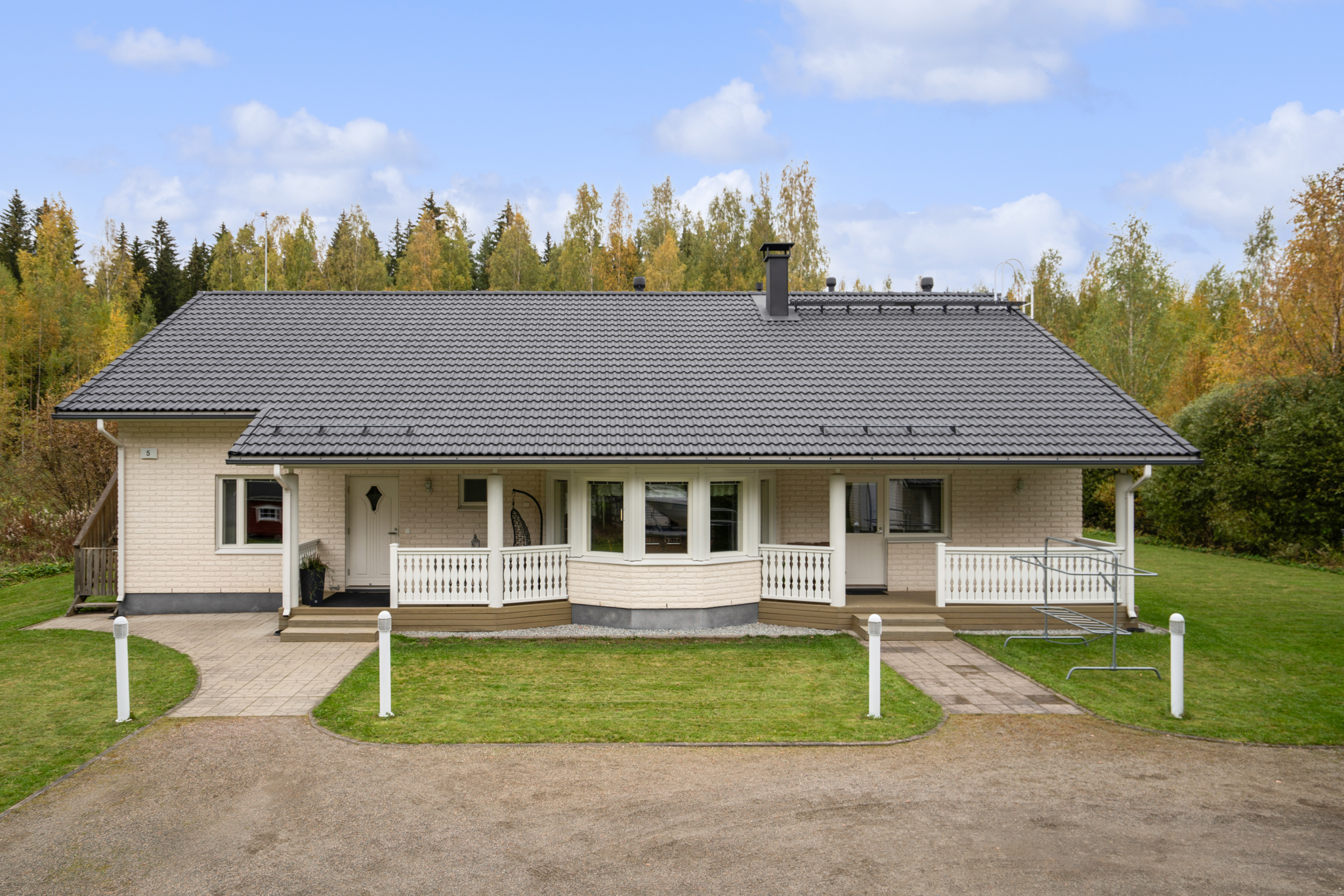 | Muut rakennukset | Päärakennuksen lisäksi kiinteistöllä on talousrakennus, joka käsittää kahden autotallin sekä varastotilan (lämpöeristetty vesik. ll.) sekä teknisen tilan. Takapihalla grillikota sekä etupihalla leikkimökki. |