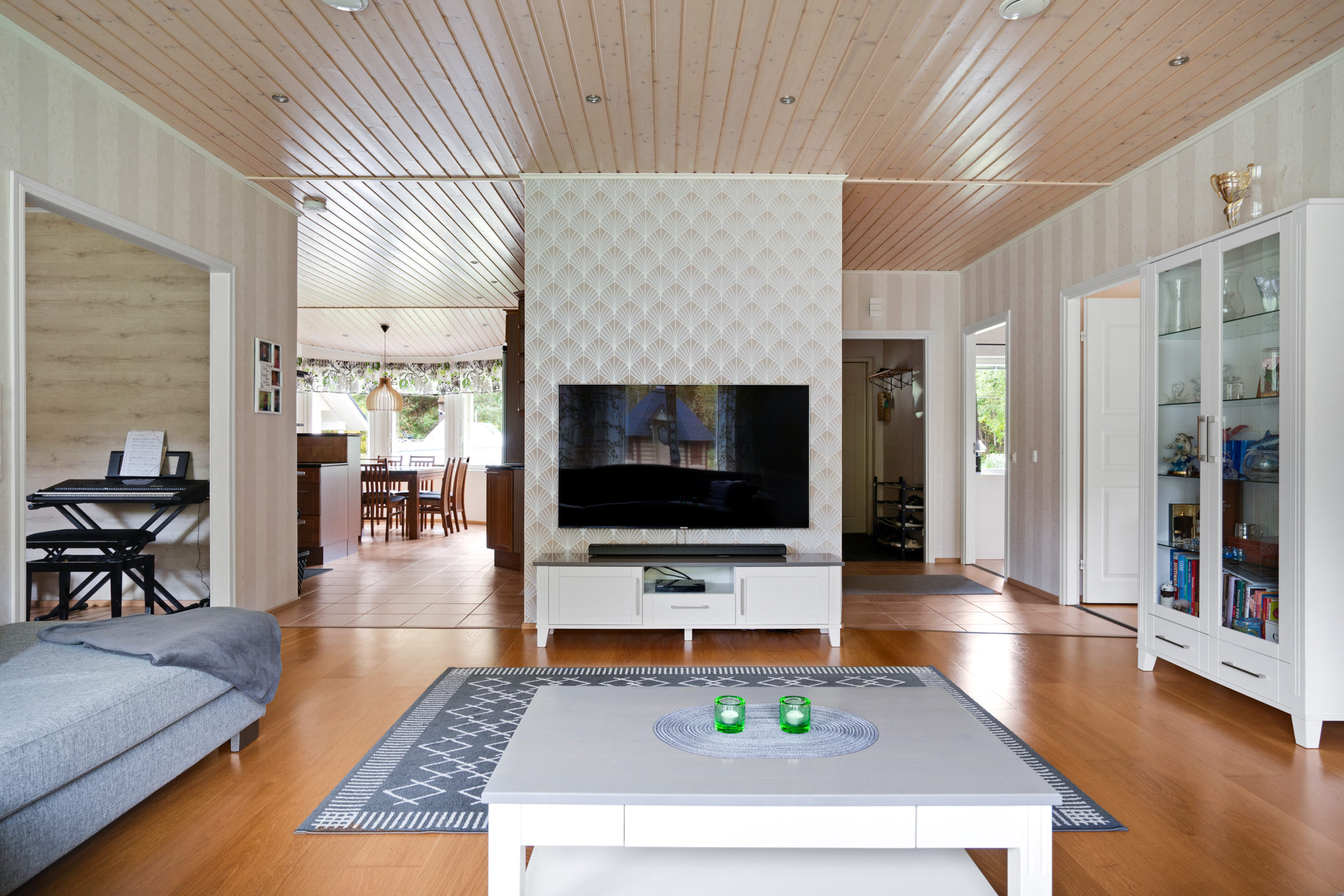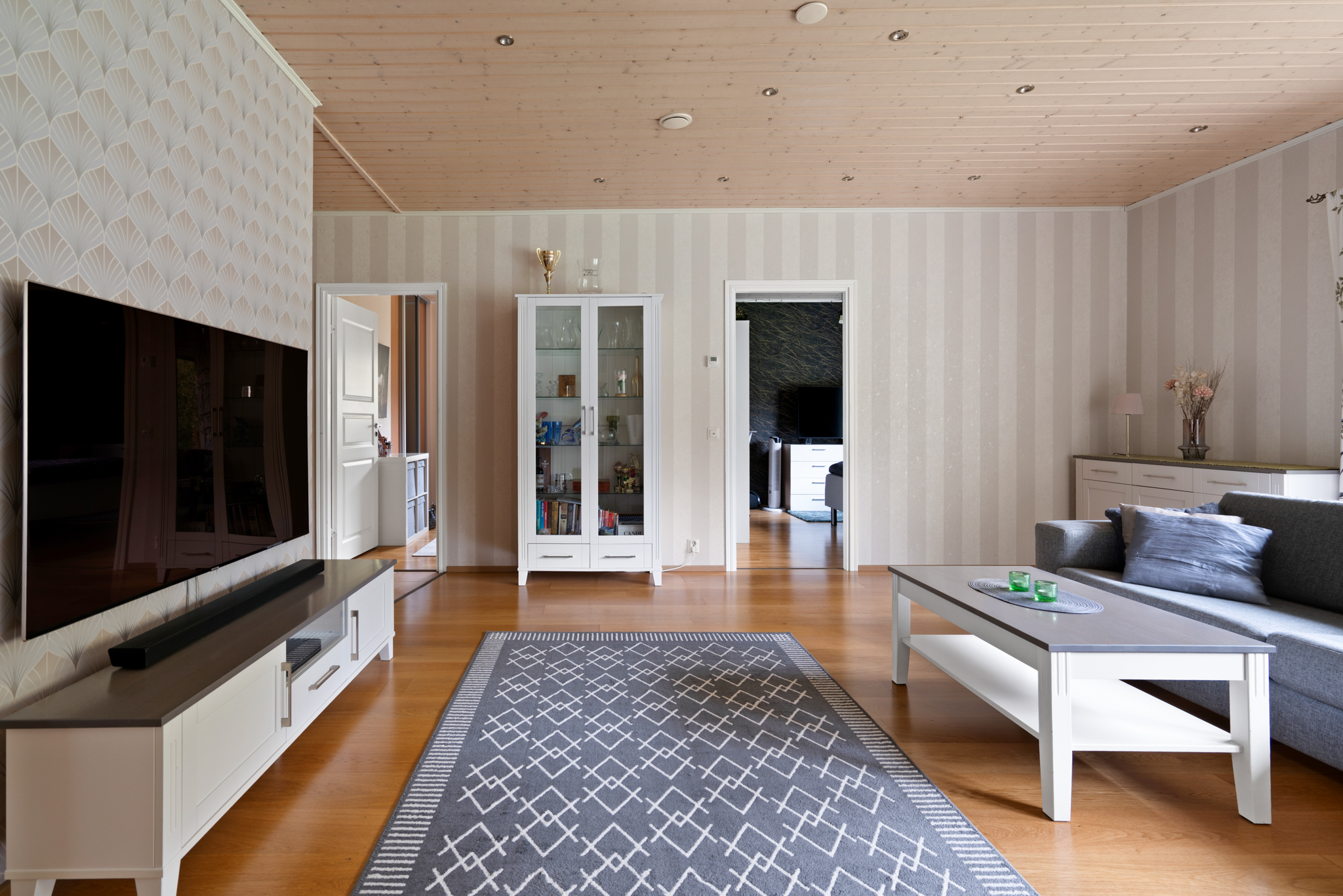 | Olohuoneen kuvaus | Seinät (tapetti), lattiat (parketti) |