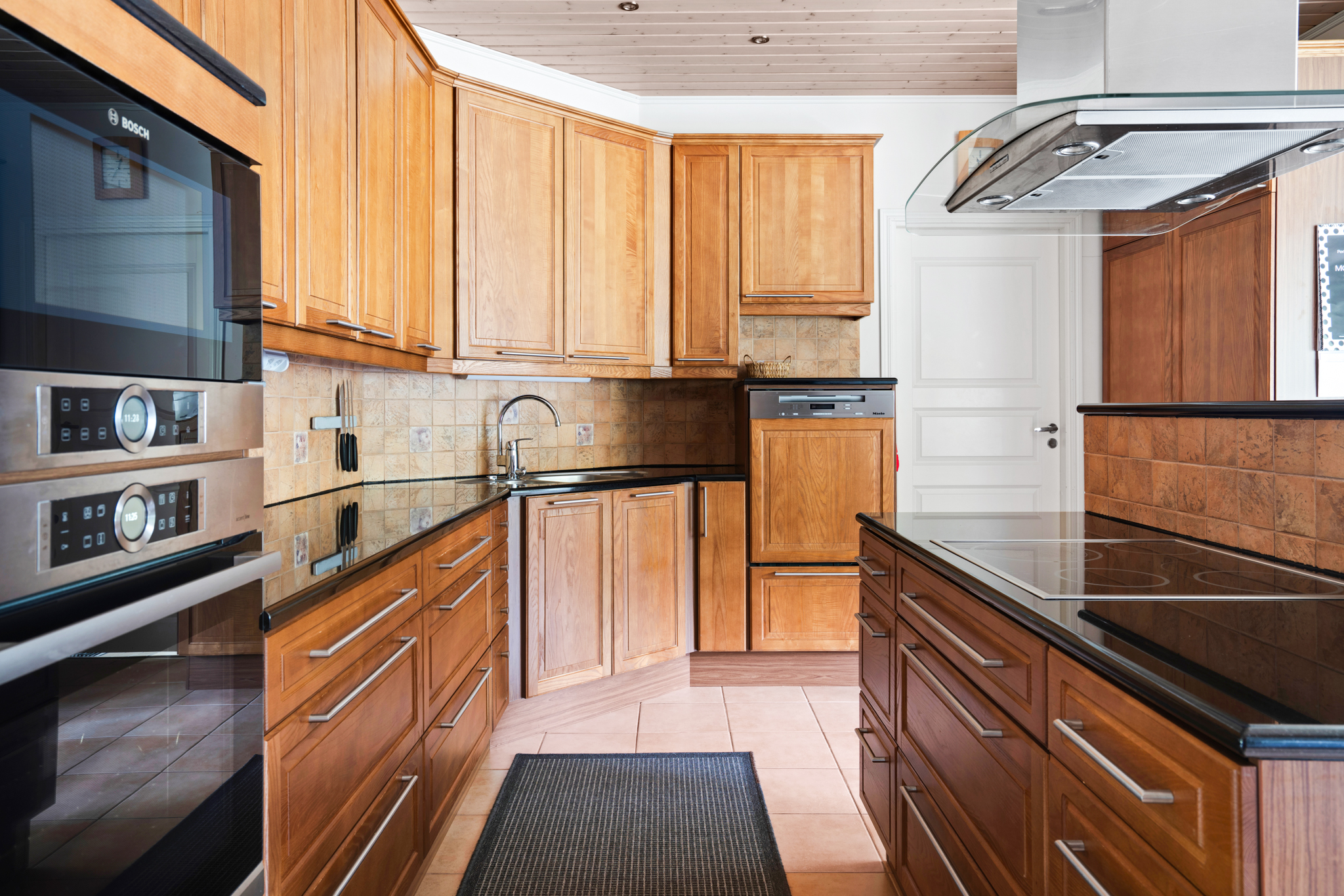 | Keittiön kuvaus | Liesi (Keraaminen liesi), työtasot (kivi), seinät (maali), lattiat (laatta), jää-viileäkaappi, astianpesukone, uuni ja liesituuletin |
