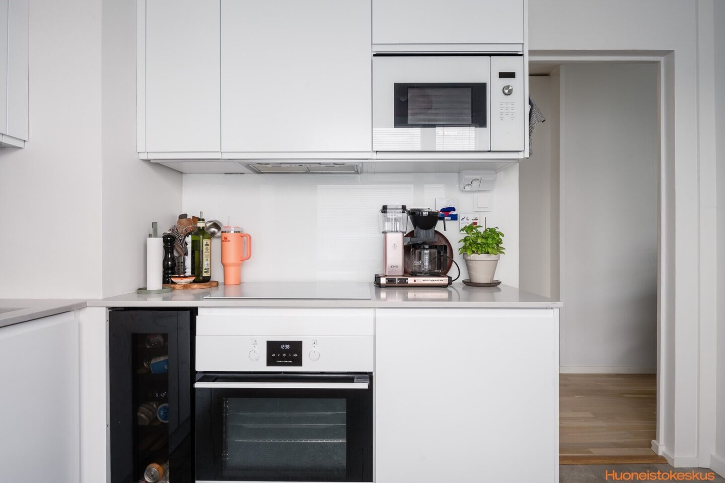 | Keittiön kuvaus | Liesi (Induktioliesi ja erillisuuni), työtasot (kivi), seinät (maali), liesi, liesituuletin, erillisuuni, astianpesukone, jääkaappipakastin, mikroaaltouuni ja viinikaappi, Remontoitu vuonna 2022. Lattia vinyylilankkua. |