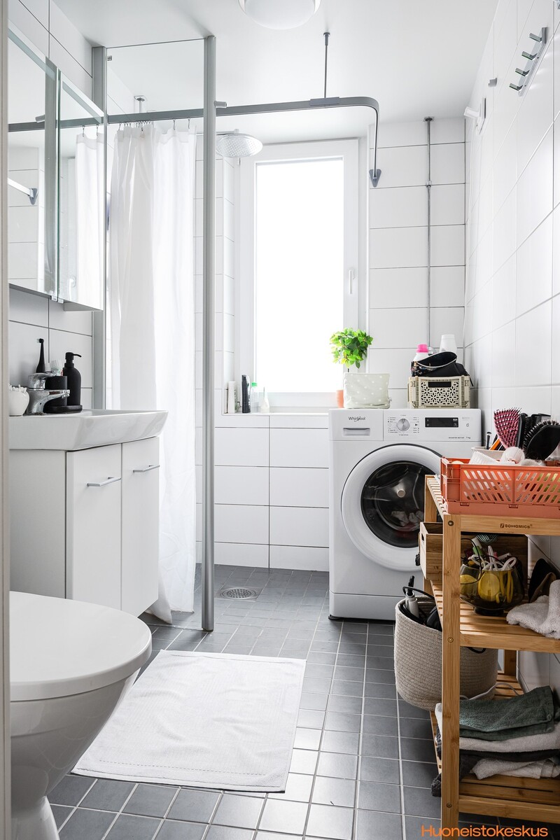| Kylpyhuoneen kuvaus | Pesukoneliitäntä, wc-istuin, allaskaappi, peilikaappi, suihku ja kiinteät valaisimet, seinät (kaakeli), lattiat (laatta), Uusittu vuonna 2017 linjasaneerauksen yhteydessä. |