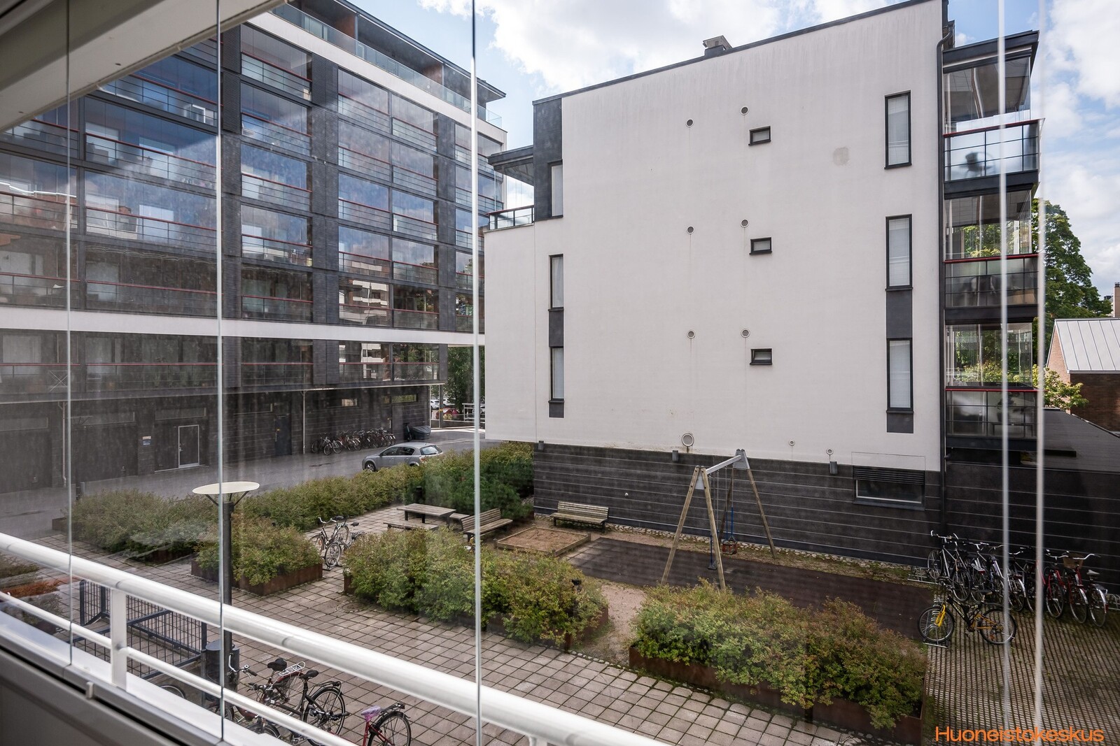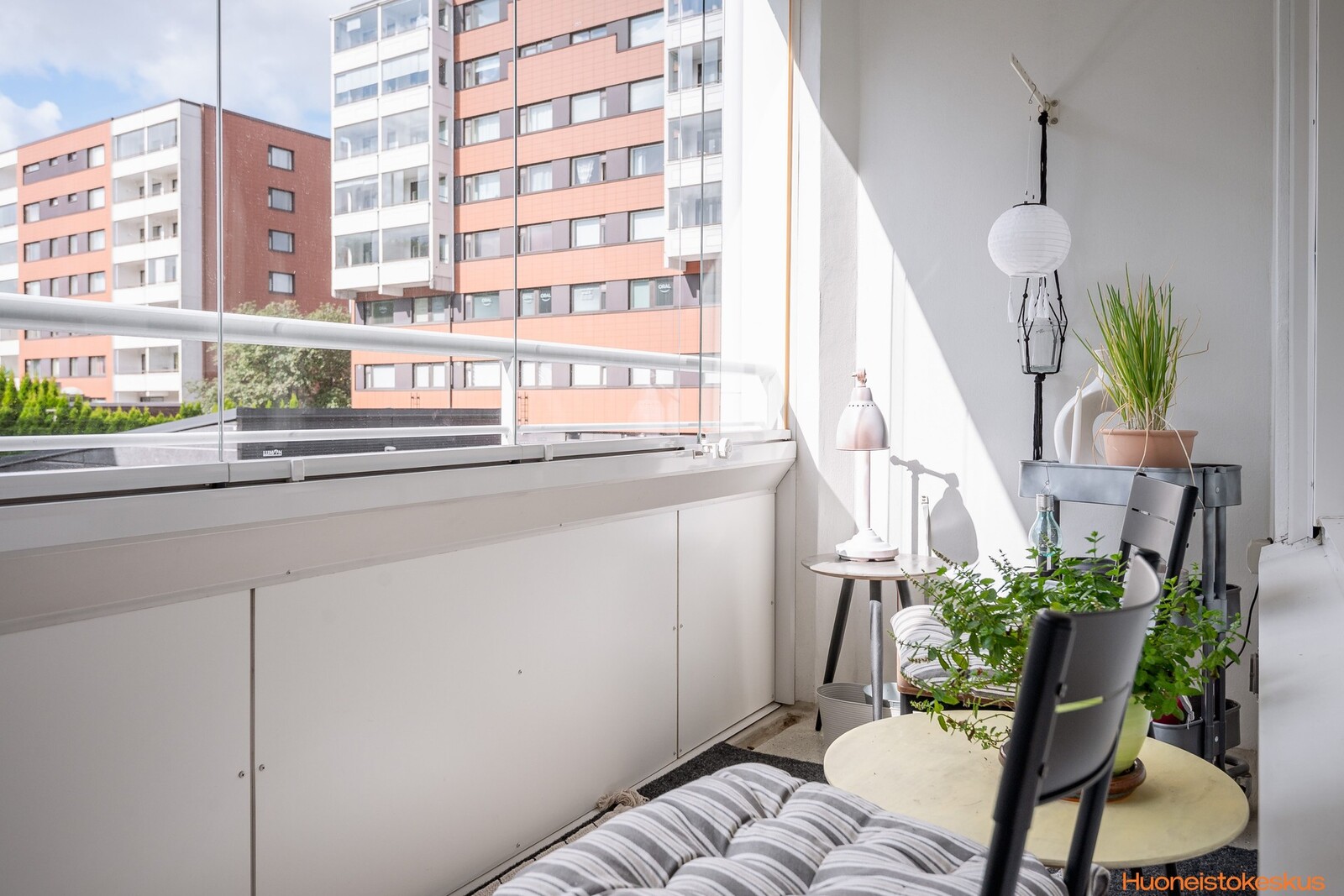 Kyseessä on rauhallinen päätyasunto, jonka ikkunat avautuvat kolmeen eri ilmansuuntaan – luonnonvaloa riittää aamusta iltaan. Tilava ja lasitettu parveke avautuu suojaisalle sisäpihalle, tarjoten viihtyisän ja rauhallisen paikan rentoutumiseen.
