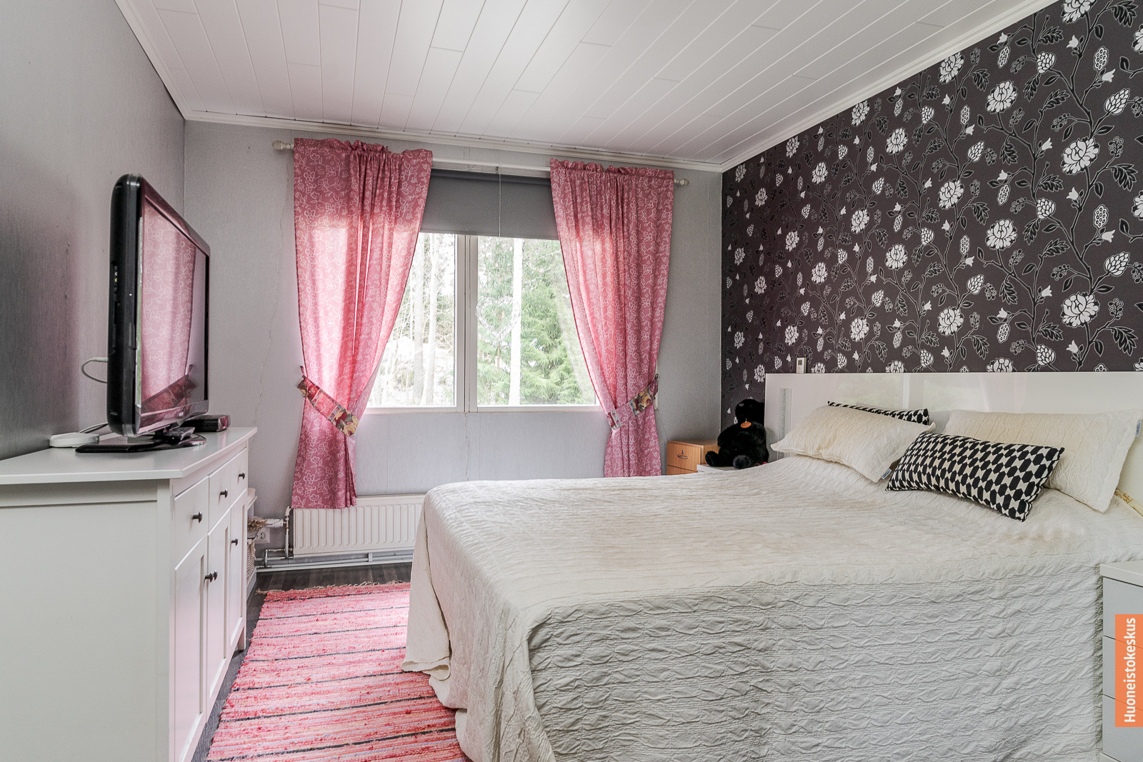 | Makuuhuoneen kuvaus | Lukumäärä: 3, seinät (tapetti ja maali), lattiat (laminaatti) |