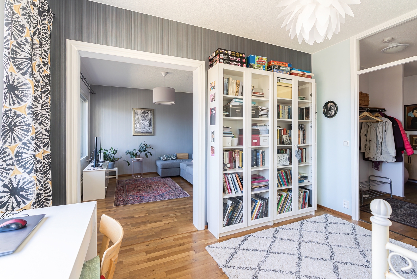 Seinät (tapetti), lattiat (parketti) |