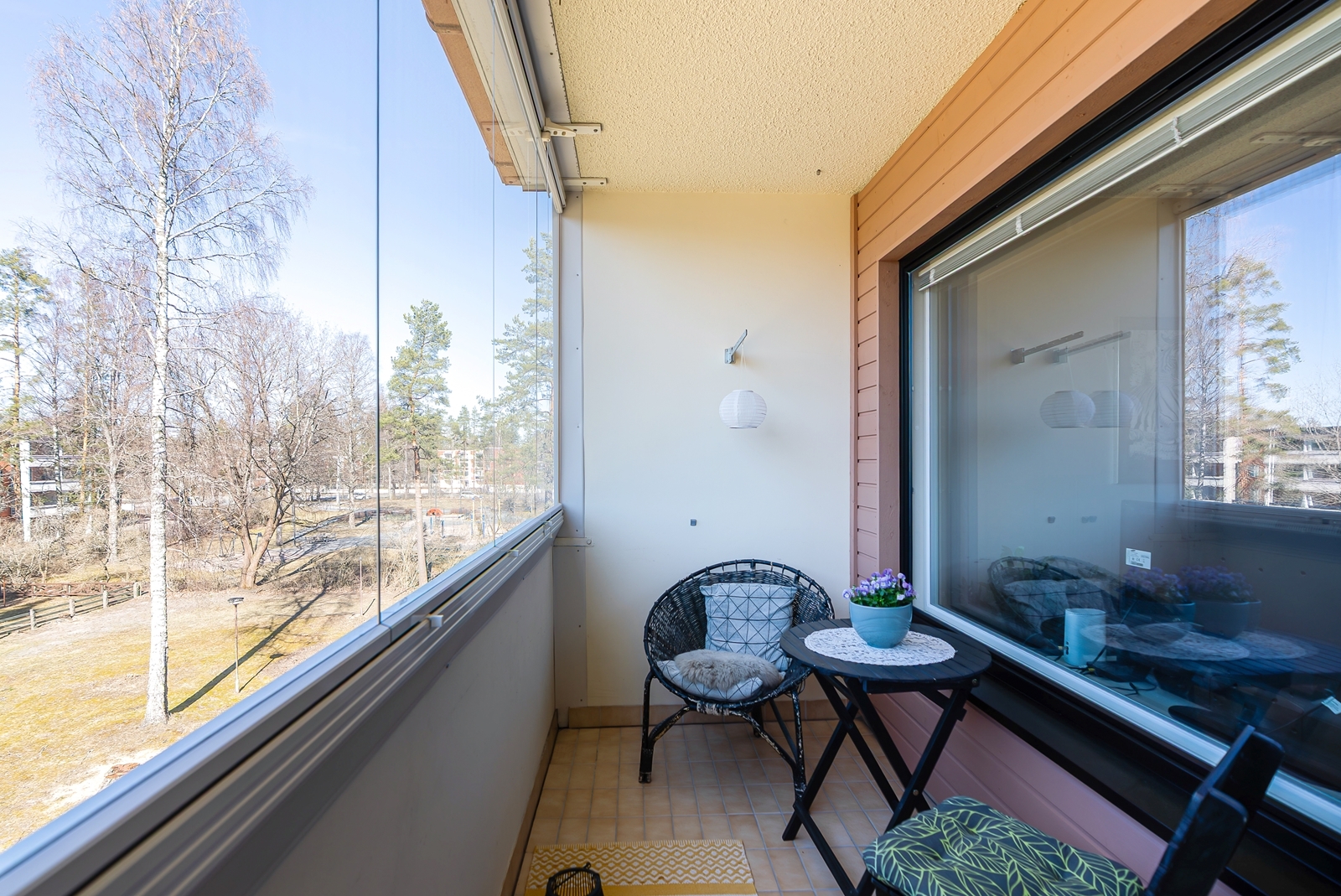 Erinomainen pohjaratkaisu, lasitettu parveke.