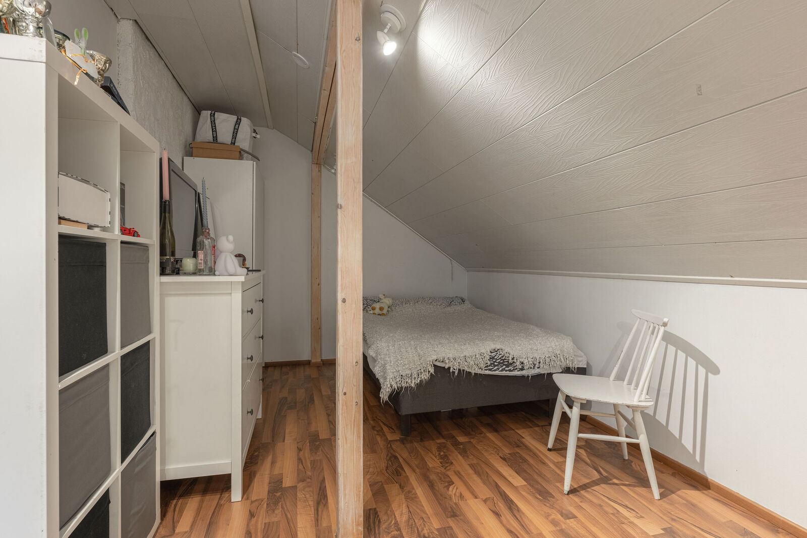 Ullakko, kellarikomero ja kellaritilassa pieni autotalli, varastotilana |