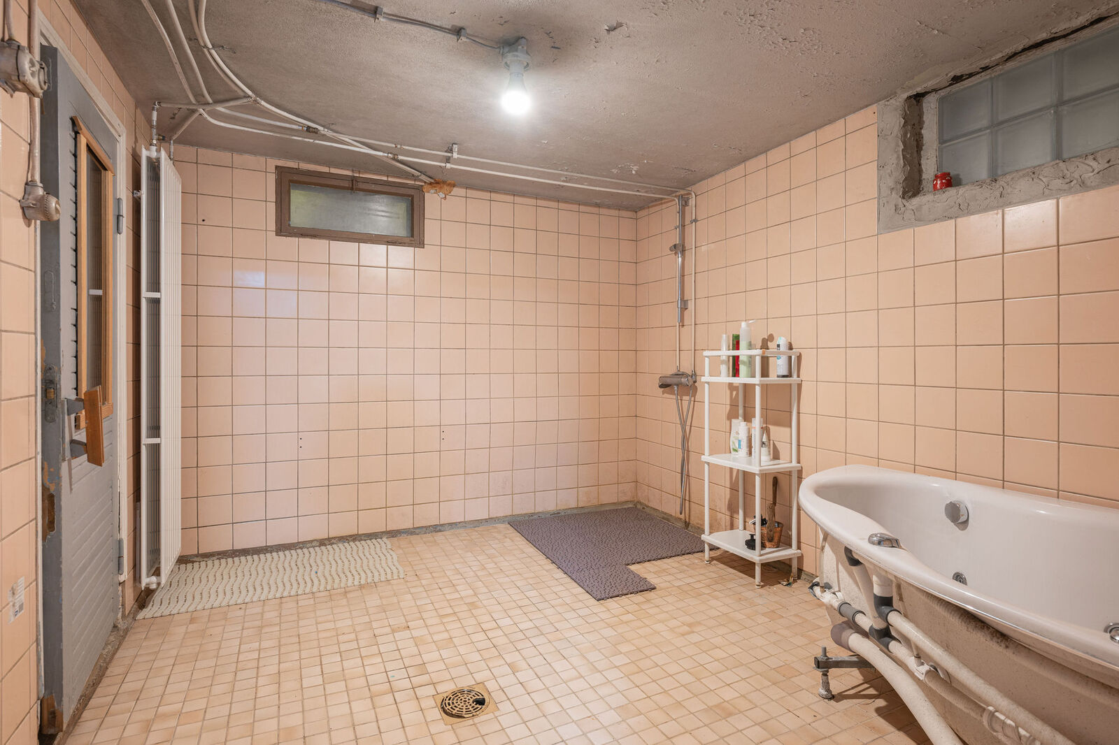 Pesukoneliitäntä, lattiat (laatta), seinät (kivi) |
