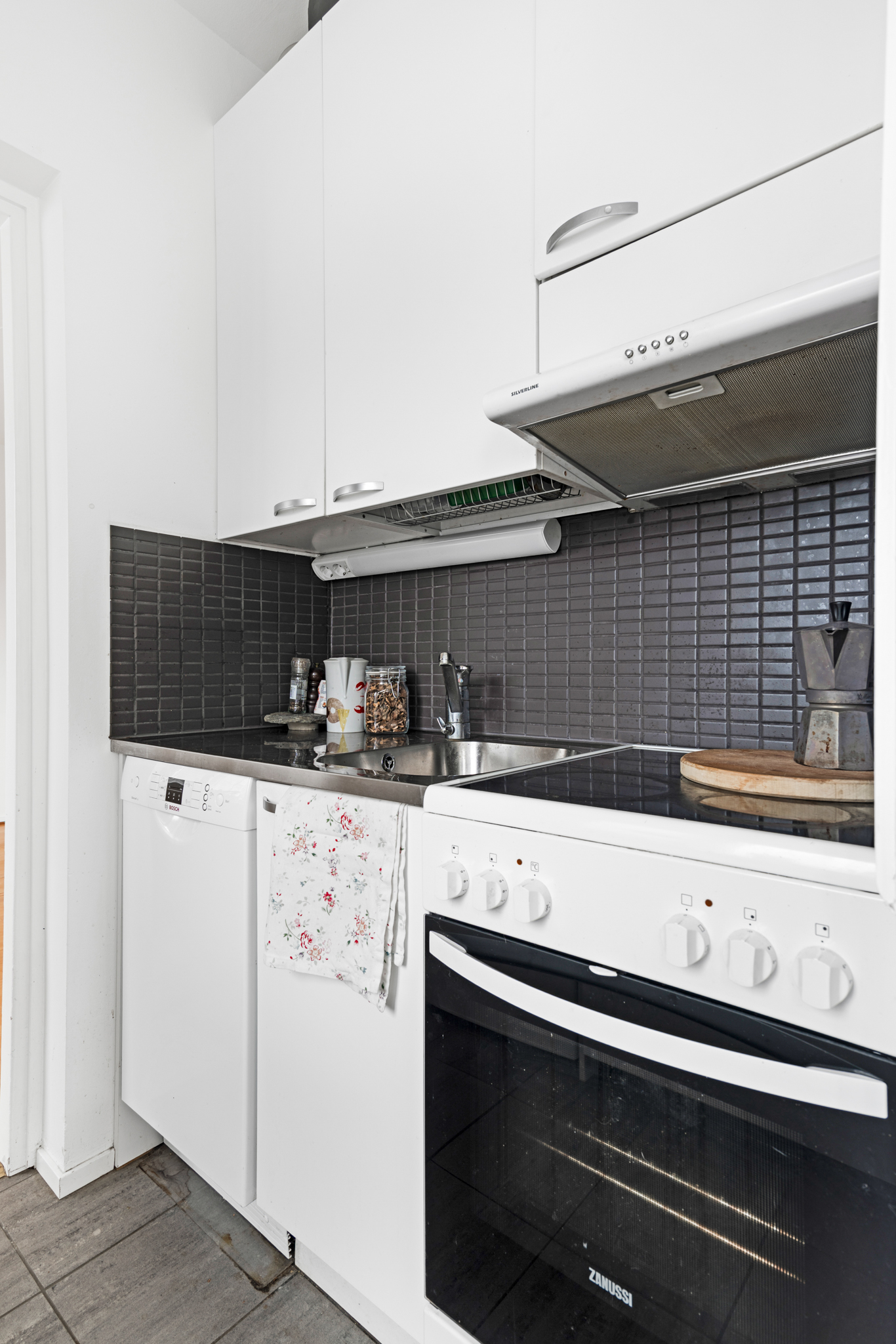 | Keittiön kuvaus | Liesi (Keraaminen liesi), työtasot (laminaatti), seinät (maali), lattiat (laatta), jenkkikaappi ja astianpesukone |