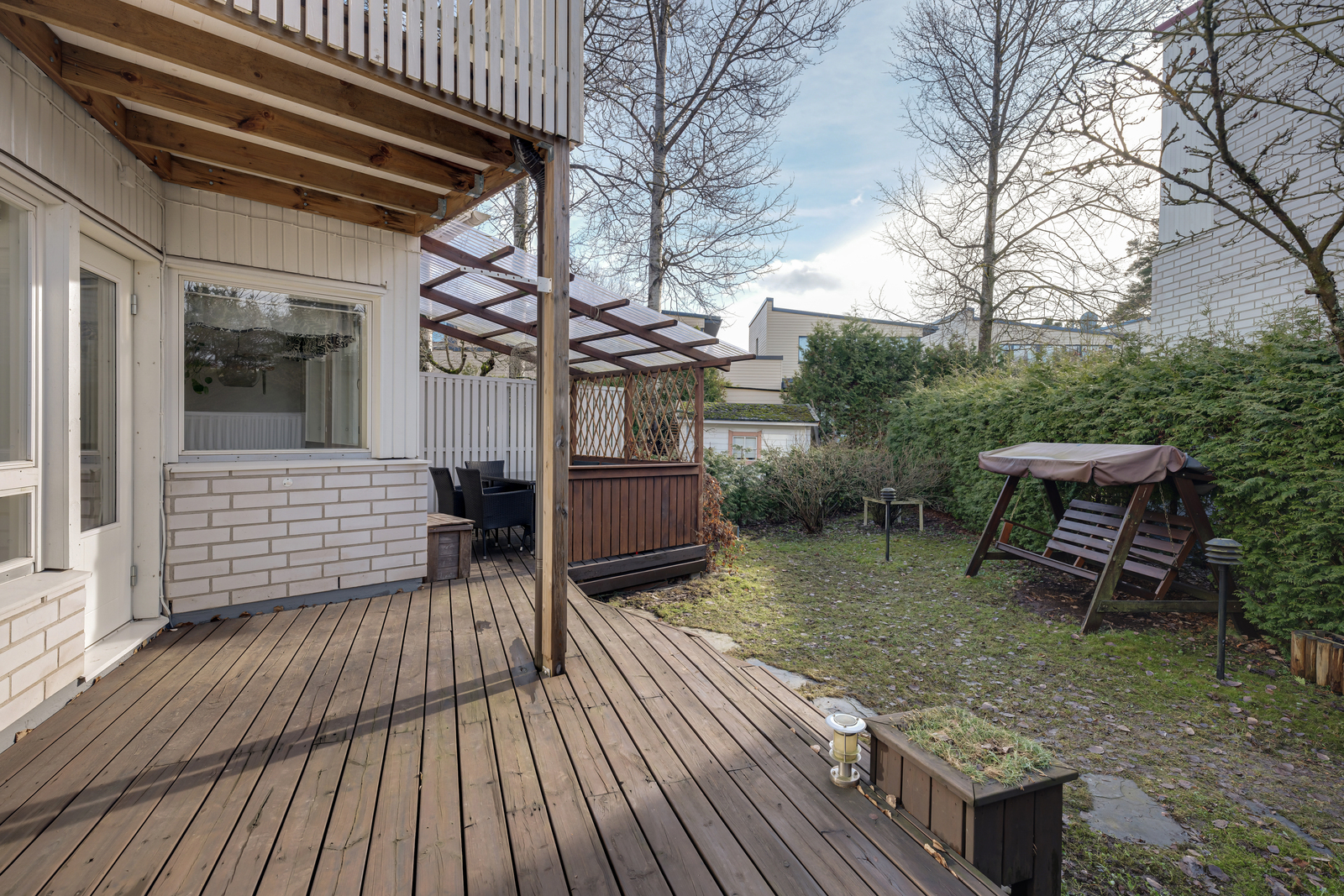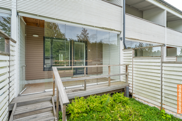 | Muuta kauppaan kuuluvaa | Parveke (kaikki parvekkeet peruskunnostettu taloyhtiön toimesta v. 2020). Huoneistolla sisäänkäynnin yhteydessä etuterassi ja kylmä varasto. Takapihalla terassi/valokate ja patio. Lisätietoja sisältyvistä varusteista: kiinteät valaisimet, lämminvesivaraaja, sälekaihtimet |