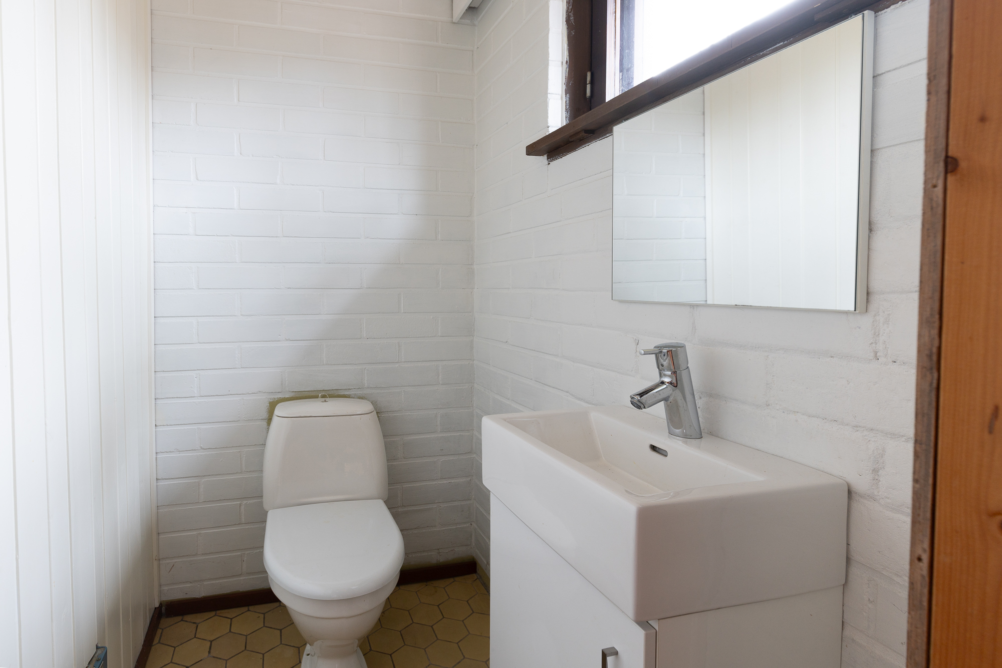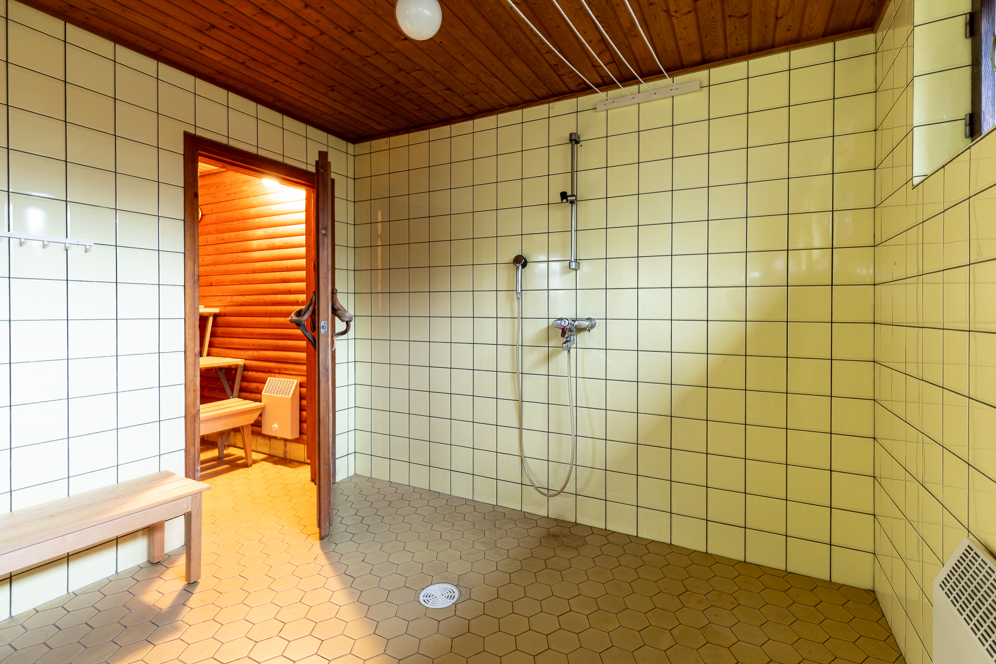 WC-istuin (2 erillistä wc:tä), suihku (2 kylpyhuonetta), kylpyamme (toisessa kylpyhuoneessa), pesukoneliitäntä (toisessa kylpyhuoneessa), lattialämmitys (saunan pesuhuoneessa), allaskaappi ja peili, seinät (kaakeli), lattiat (laatta) |