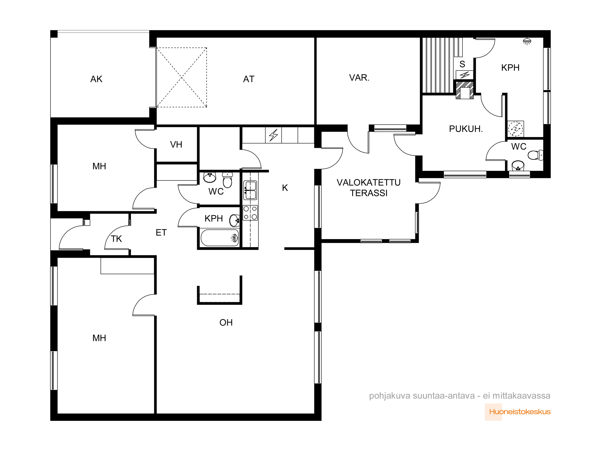 Ei tarkistusmitattu. Pinta-alat saattavat tämän ikäisissä kohteissa (rekisteröity ennen 01.01.1992) poiketa olennaisestikin asuinrakennusten nykyisten mittaustapojen ja standardien (SFS 5139) mukaan laskettavasta asuintilojen pinta-alasta. Pinta-ala voi siis olla edellä mainittua pienempi tai suurempi., Ei |