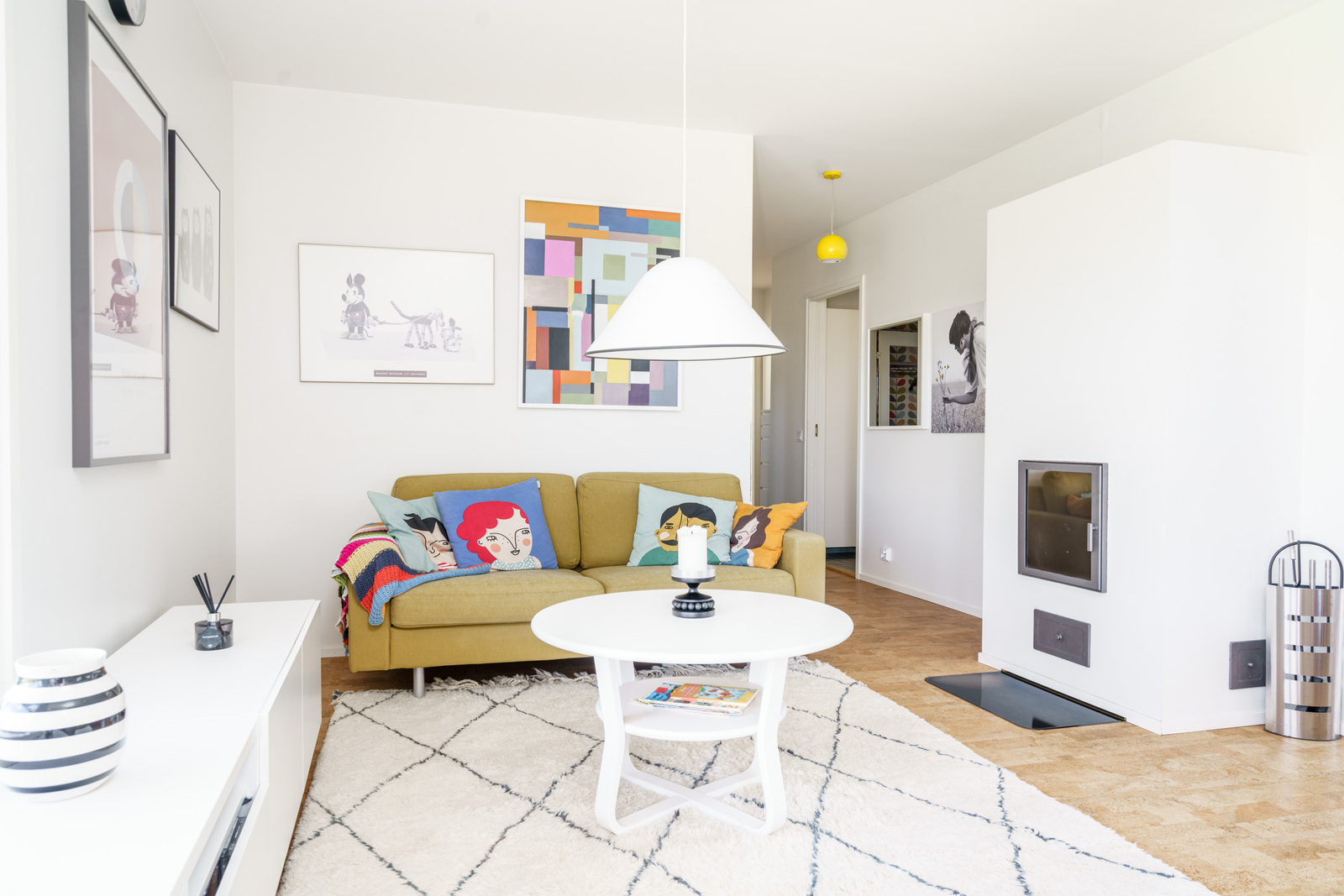 | Olohuoneen kuvaus | Seinät (tapetti), lattiat (korkki) |