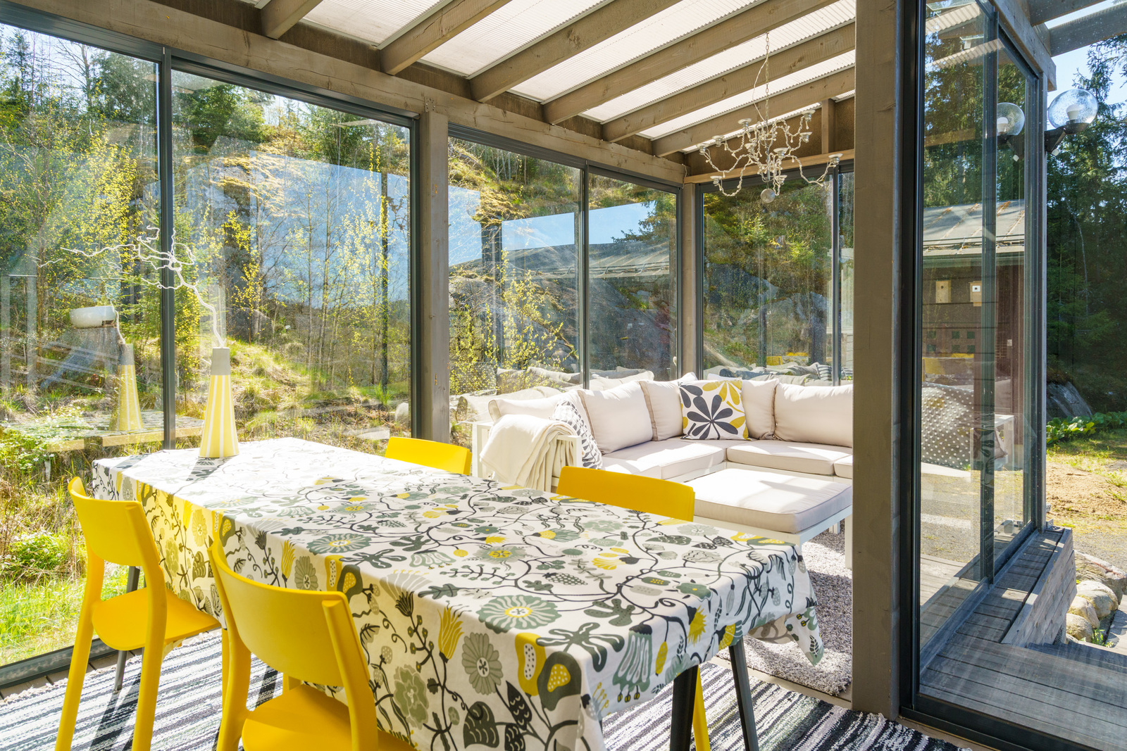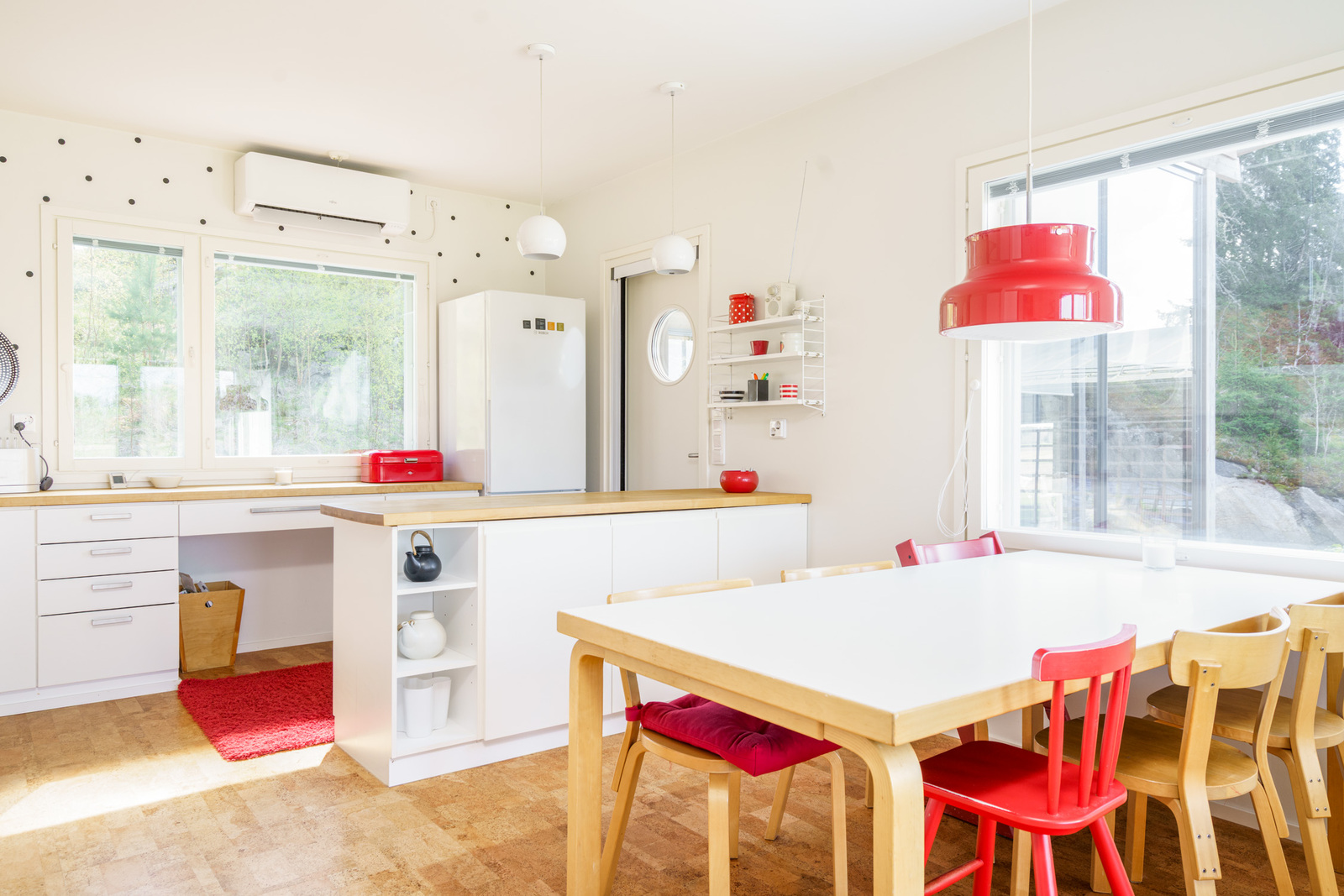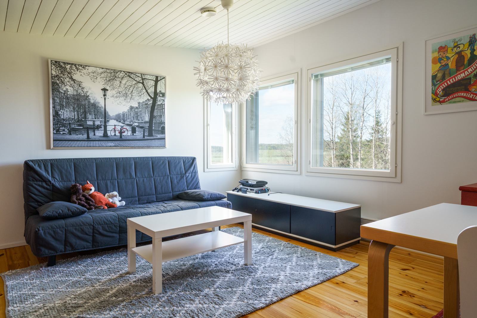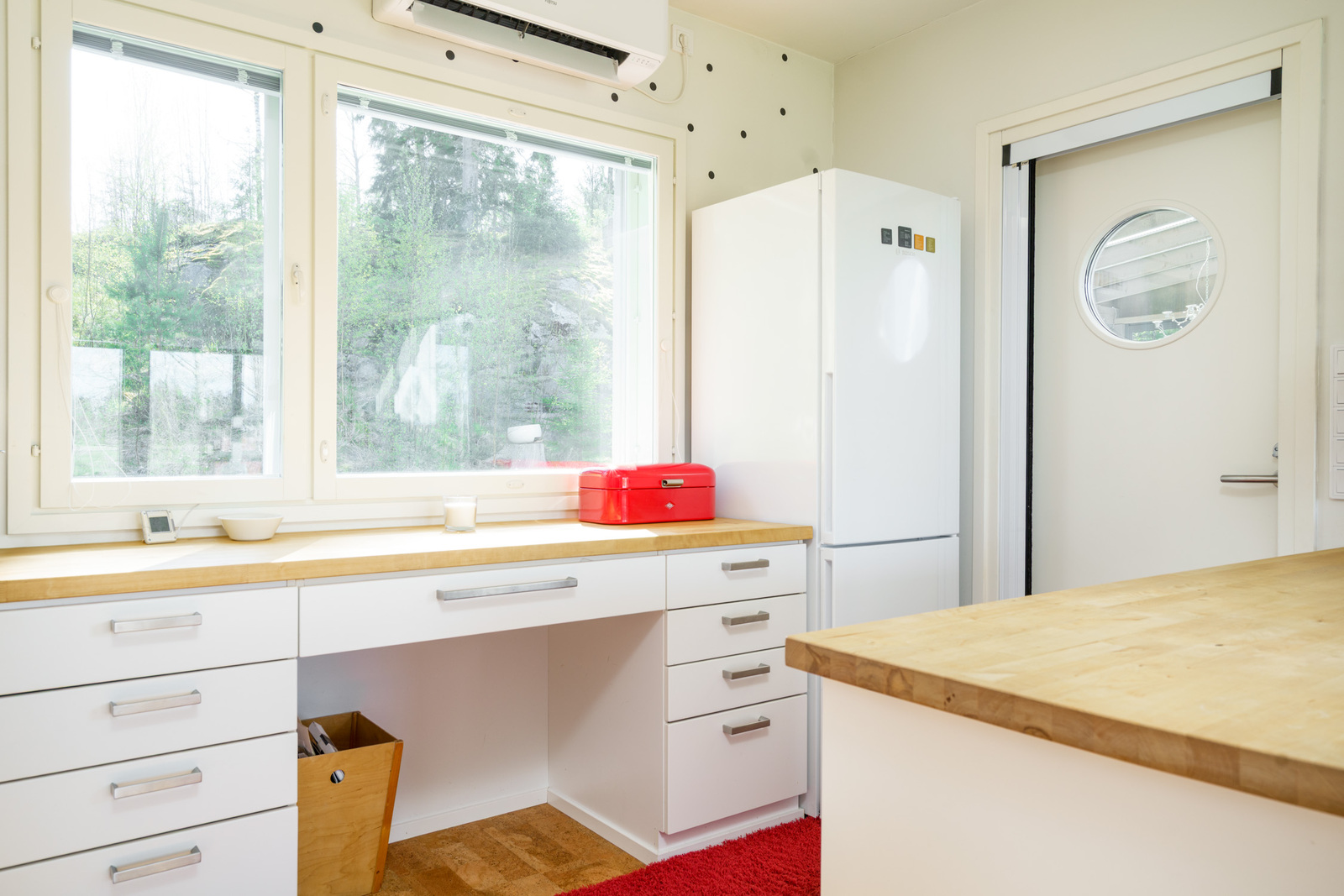 Avarassa olohuoneessa on varaava takka, joka tuo lämpöä ja tunnelmaa. Toimiva keittiö on varusteltu laadukkailla kodinkoneilla, ja keittiöstä on suora käynti lasitetulle ja katetulle terassille.