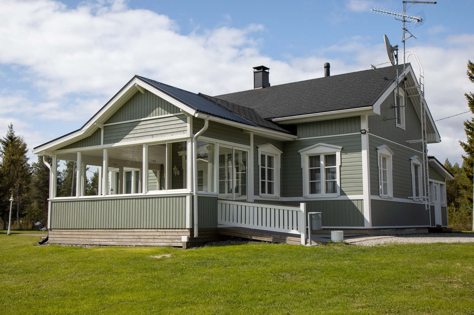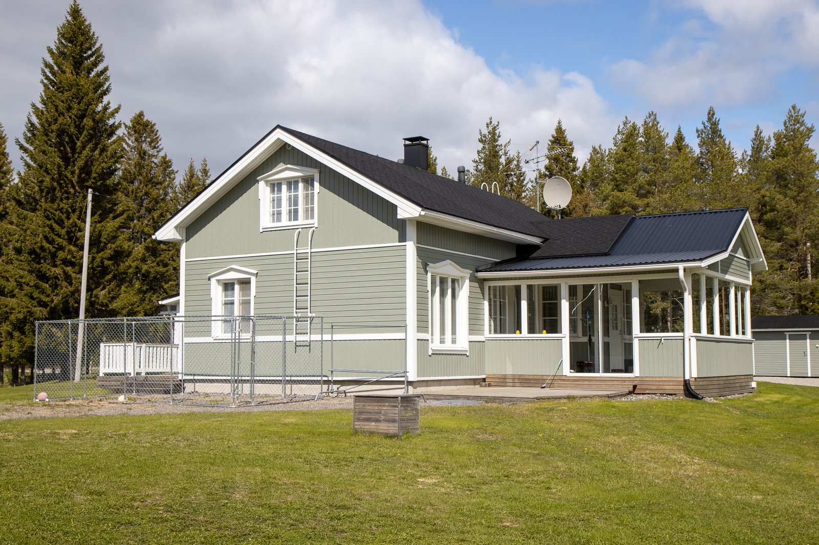 Päärakennuksen laajennus ja ulkosauna , päärakennuksen saunan tilalle laitettu lämmönjakohuone 2007. Kahden auton talli 2009. Rakennusten mmalaus 2022.