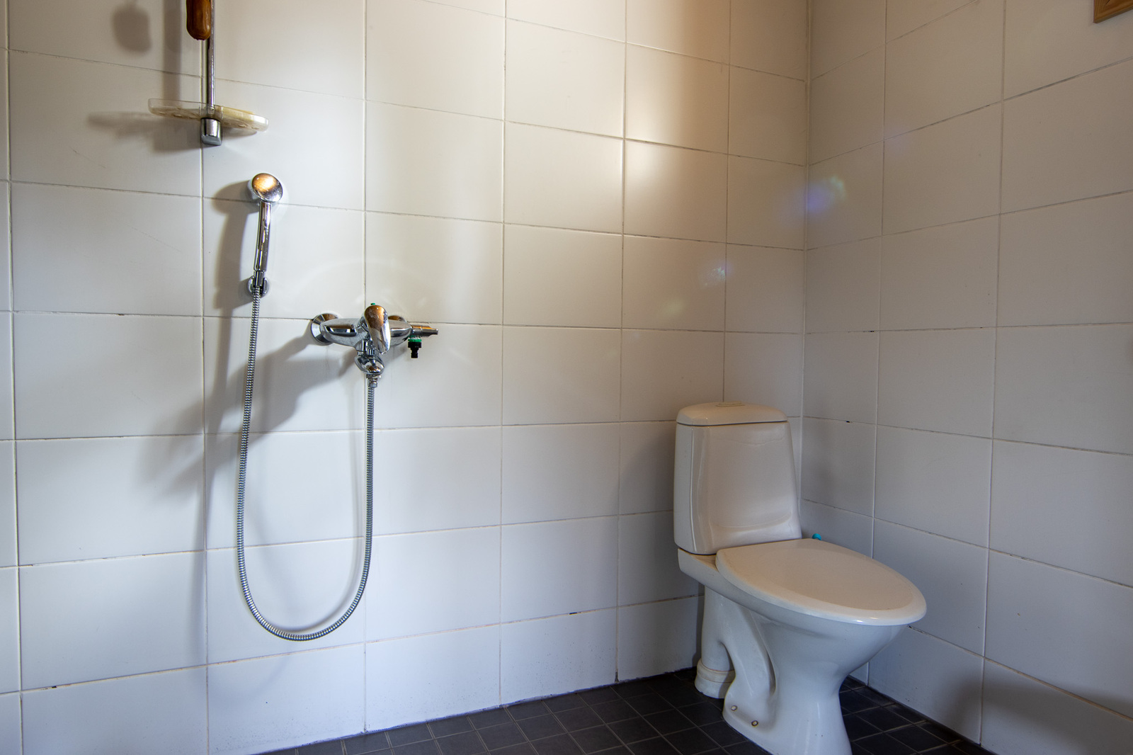 Suihku, lattialämmitys, peilikaappi ja wc-istuin, seinät (kaakeli), lattiat (laatta) |