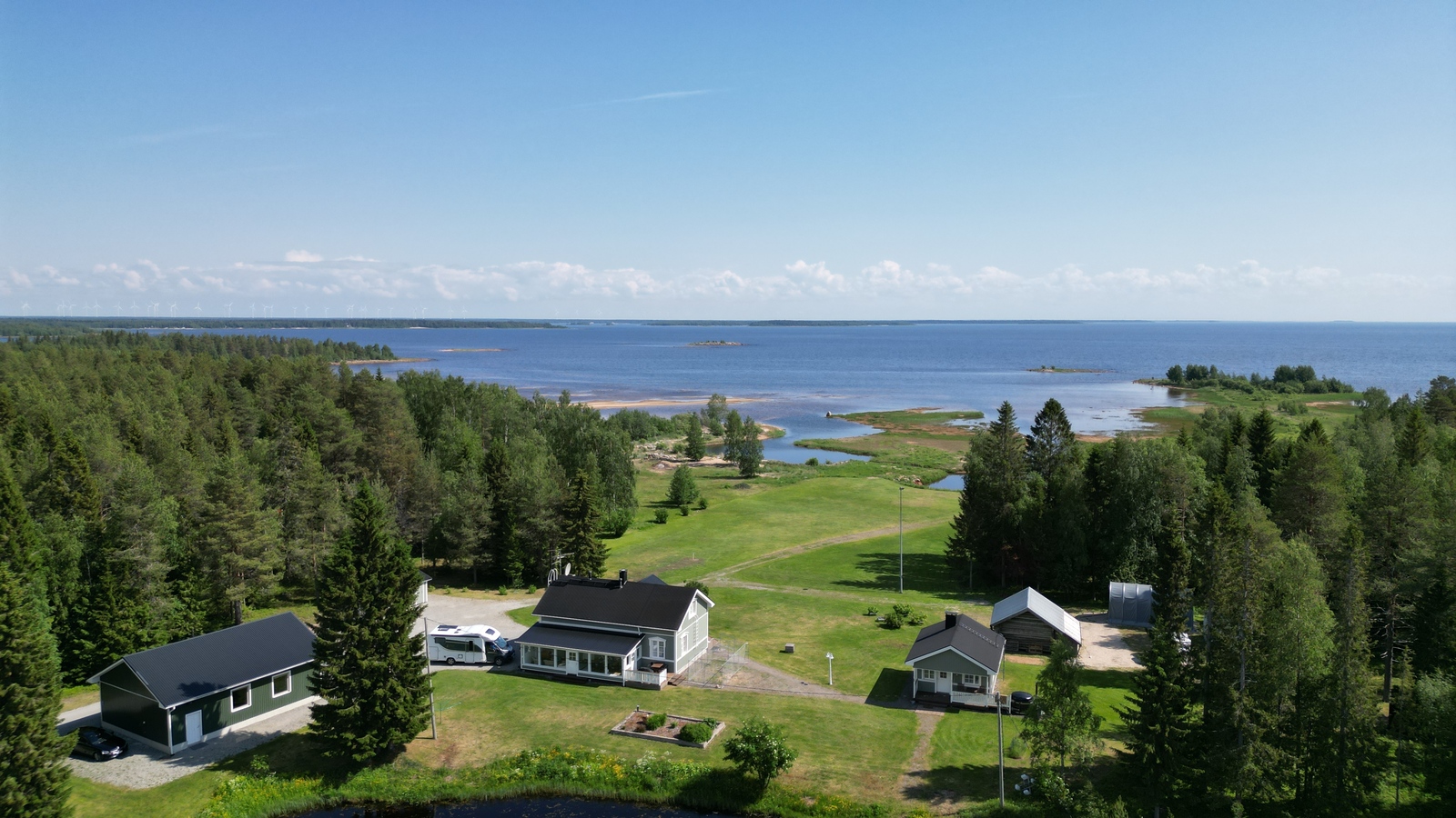 Loistelias , ainutlaatuinen merenranta kiinteistö tarjolla autotalleine, pihasaunoineen ym. rakennuksineen. Suuri 2 ha:n tontti, joka ulottuu merenrantaan asti, oma ruopattu veneväylä melkein pihaan asti. Eteläpuolella meri ja pohjoispuolella lampi, rakennukset ovat kauniisti veden ympäröimänä. Hoidettua pihaa riittävästi! Koti ja mökki samassa paketissa!