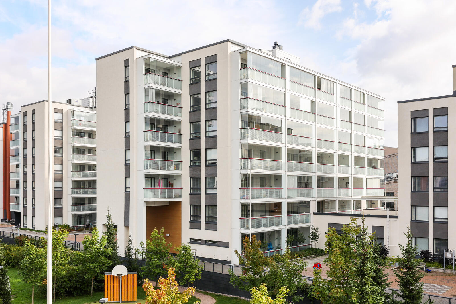 Olohuone on mukavan tilava ja sen yhteydessä on hyvin varusteltu avokeittiö sekä huoneiston levyinen lasitettu parveke länteen. Kylpyhuone on tilava ja pyykinpesukoneellekin on paikka varattuna.