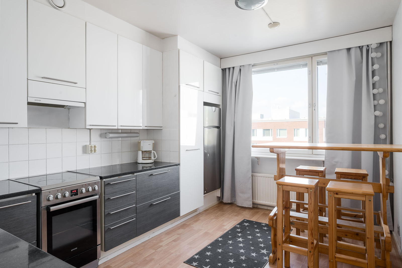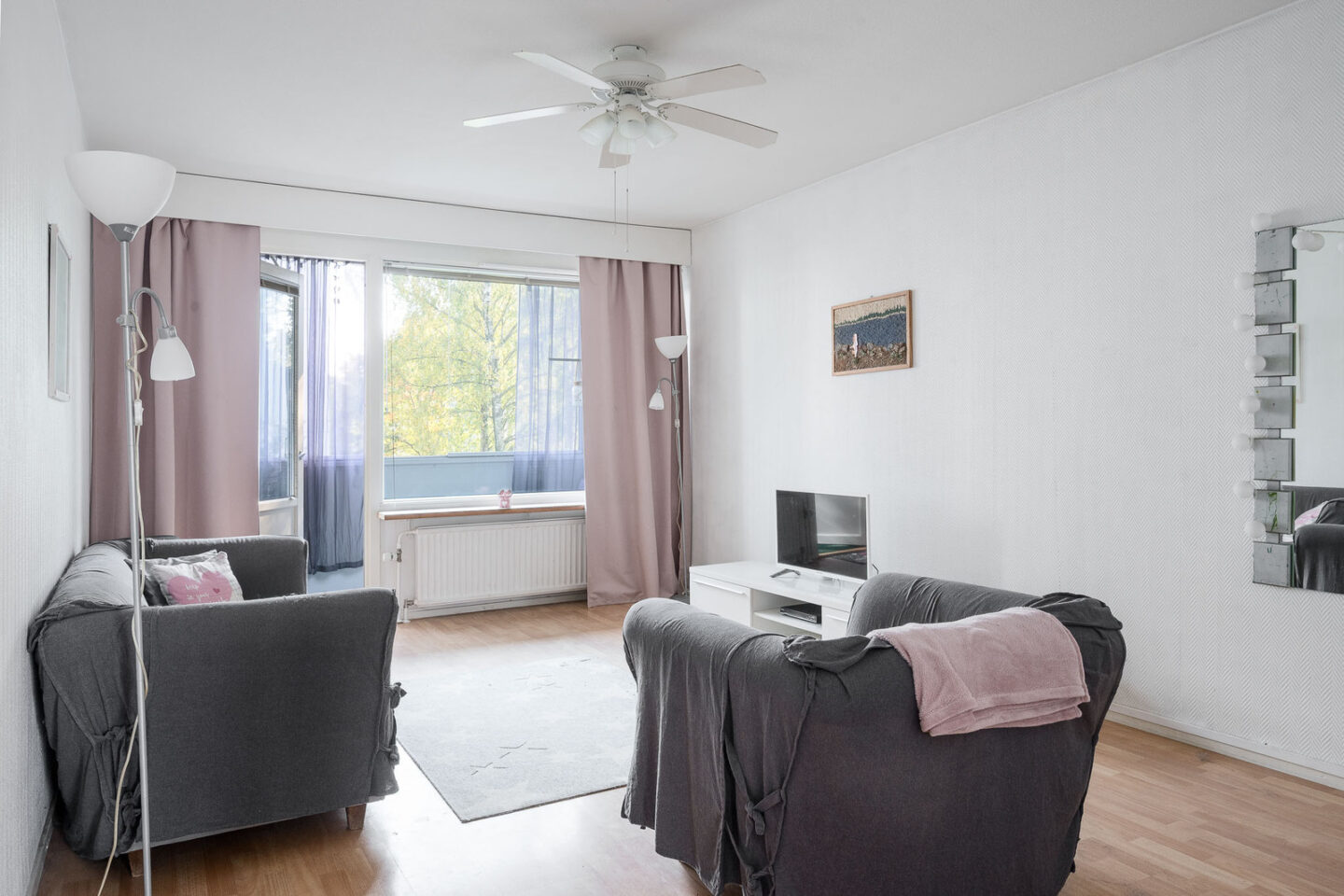 Seinät (lasikuitutapetti), lattiat (laminaatti) |