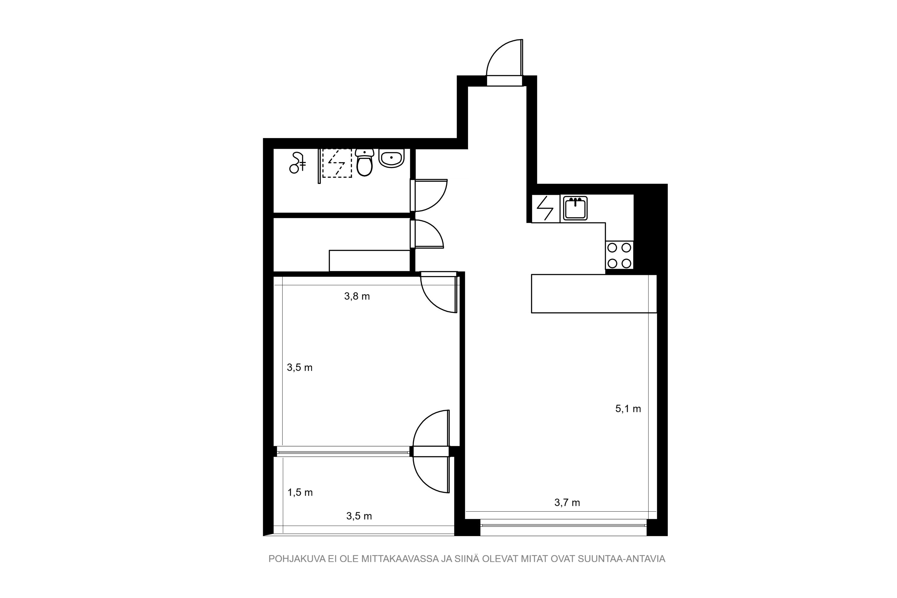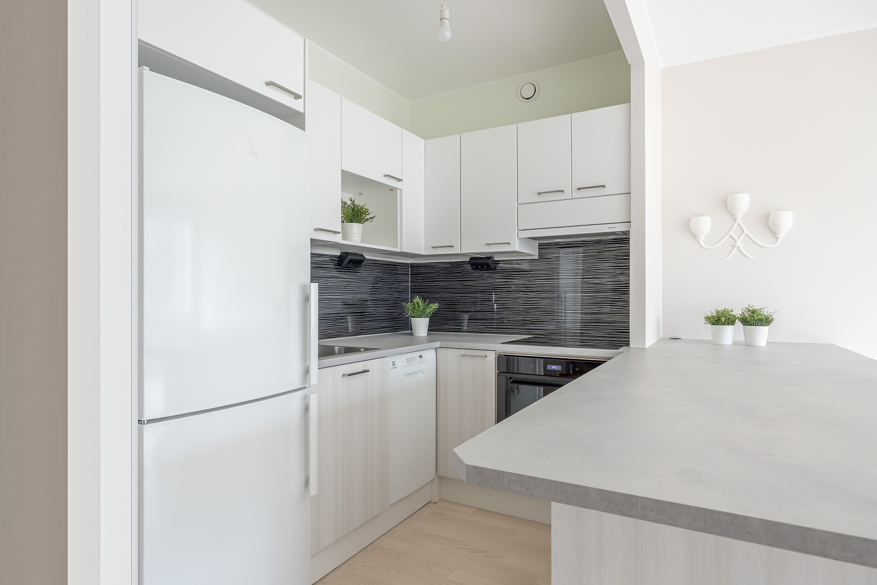 | Tehdyt remontit | 2024 huoneisto remontoitu kauttaaltaan. Keittokomeron ja olohuoneen välinen seinä poistettu. Vanhat kiintokalusteet ja lattiamateriaalit poistettu. Kiintokalusteet, kodinkoneet, väliovet ja lattiamateriaalit uusittu. Seinät ja katot maalattu. |