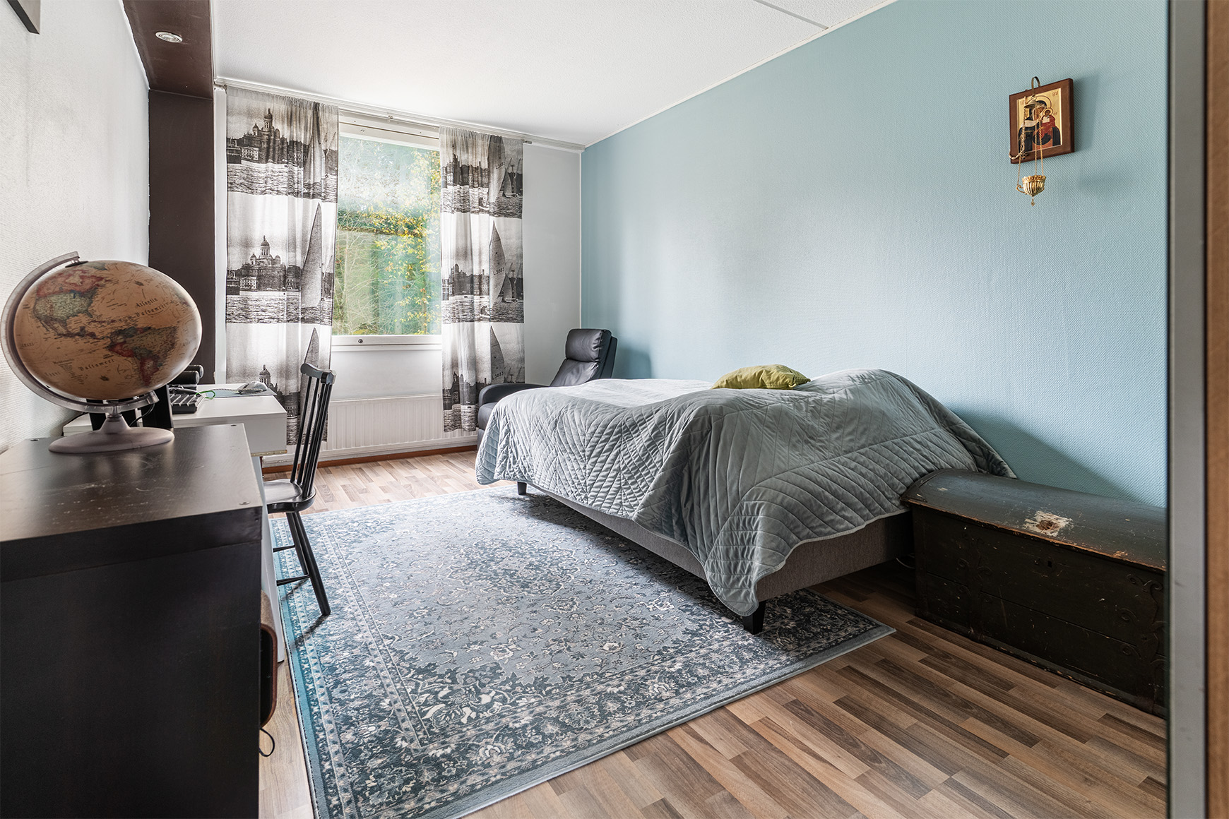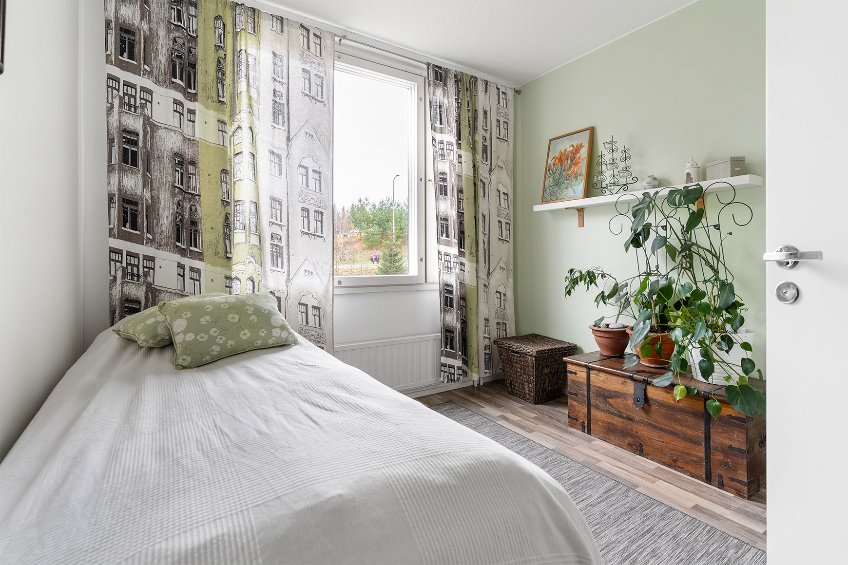 | Makuuhuoneen kuvaus | Lukumäärä: 2, seinät (lasikuitutapetti ja maali), lattiat (laminaatti) |
