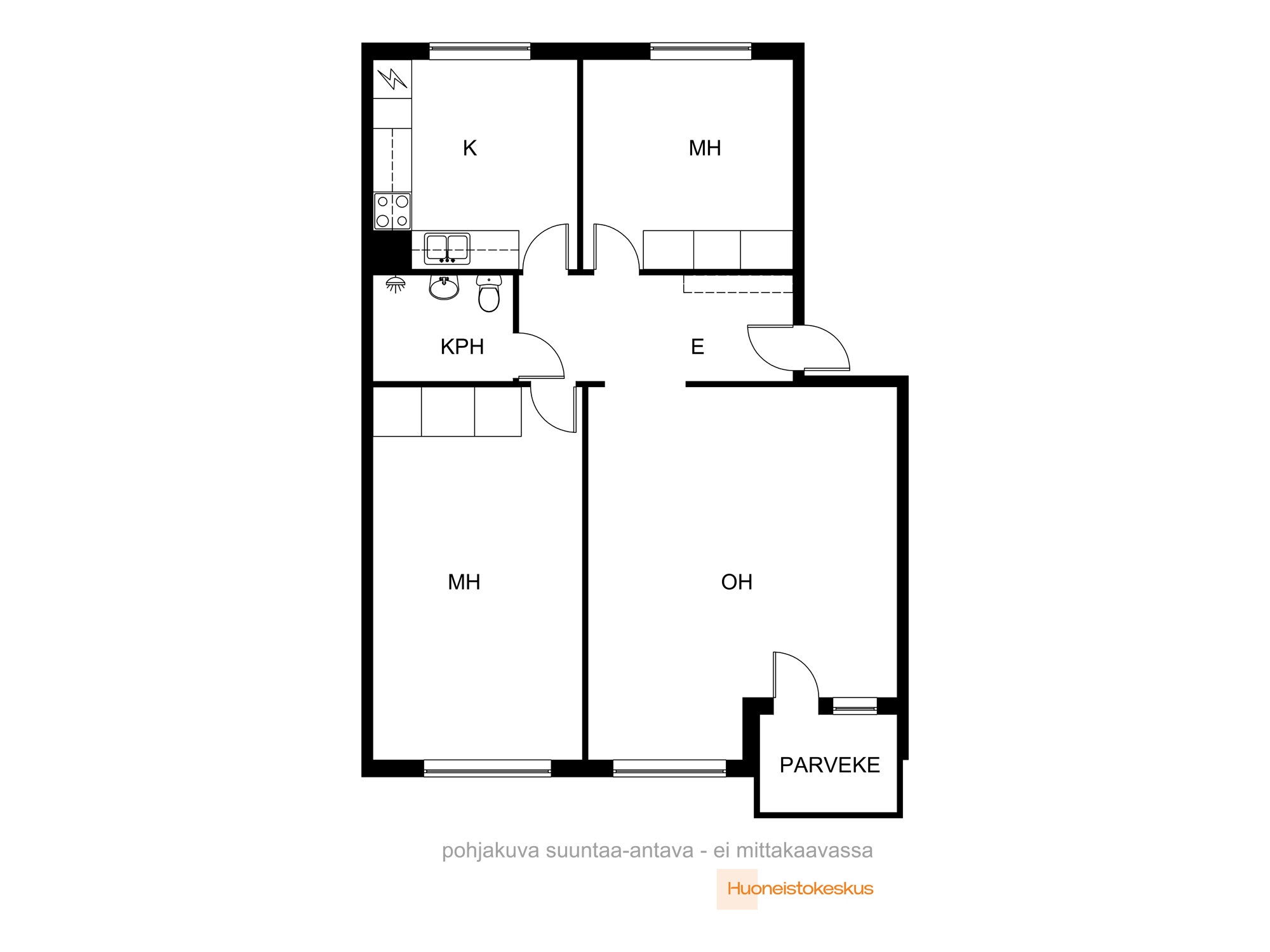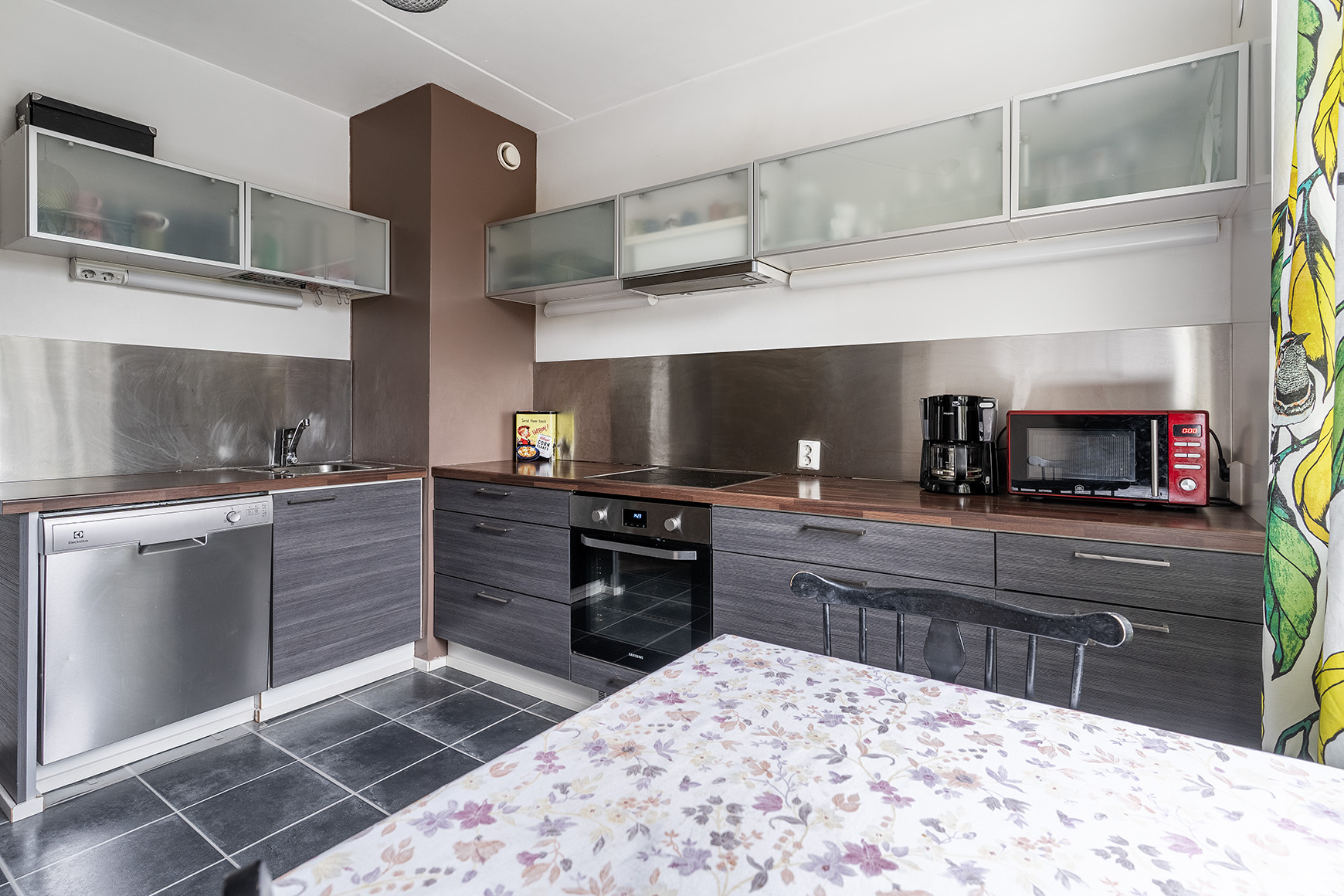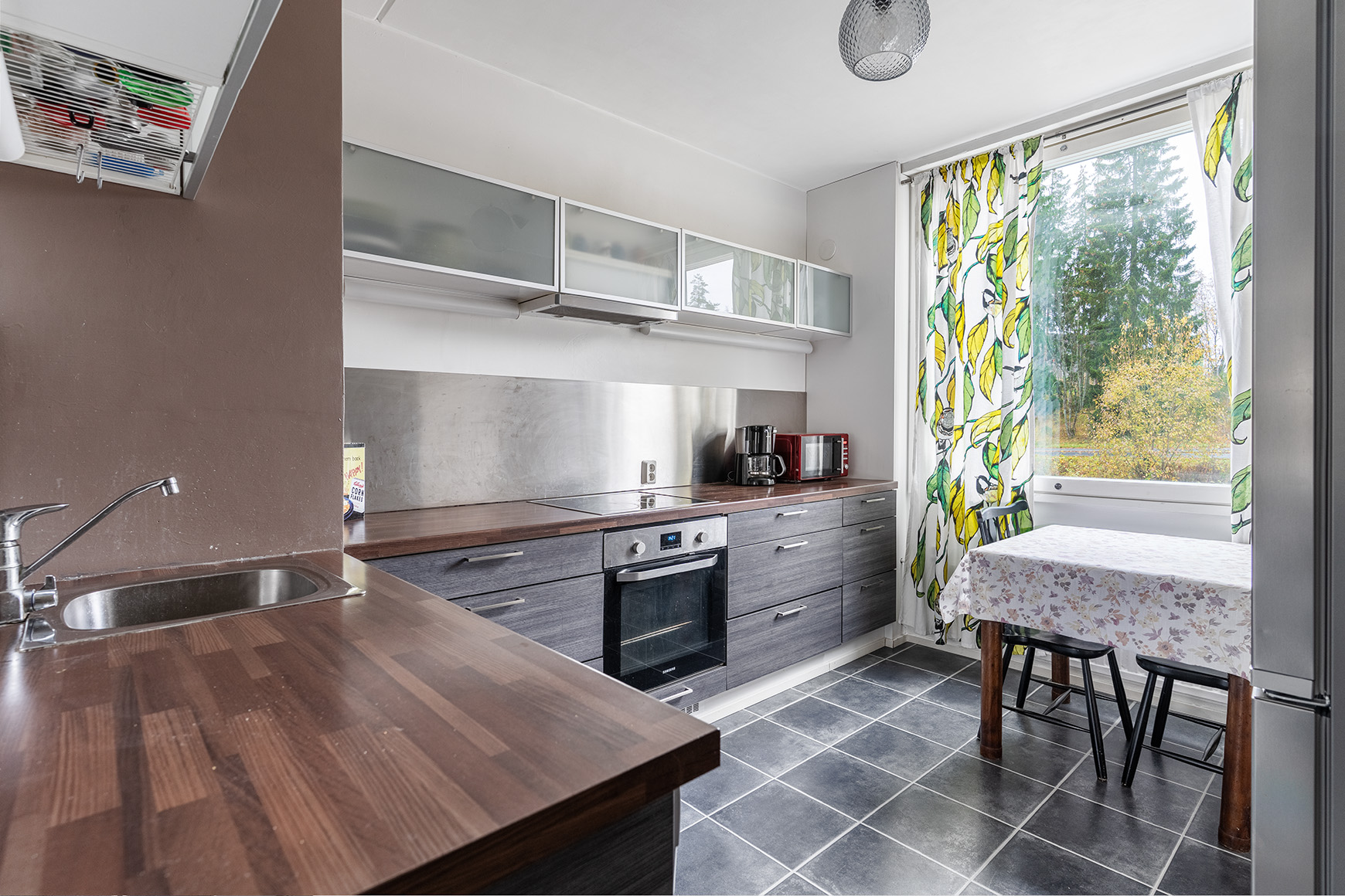 Asunnossa on kaksi makuuhuonetta, tilava olohuone ja moderni keittiö, jossa kaapistojen ovet on uusittu muutama vuosi sitten. Parveke tuo lisätilaa ja mahdollisuuden nauttia ulkoilmasta omassa rauhassa.