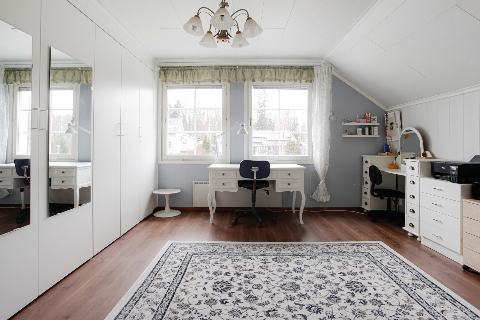| Makuuhuoneen kuvaus | Lukumäärä: 3, seinät (tapetti), lattiat (laminaatti) |