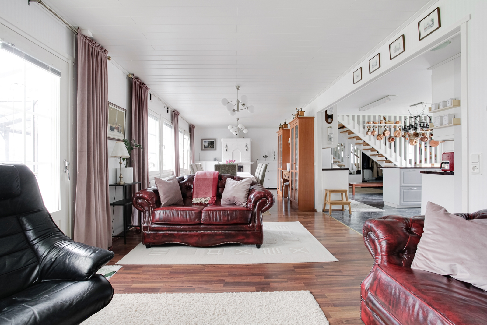 Talon tilava ja valoisa olohuone kutsuu rentoutumaan, ja keittiön saareke on kätevästi siirrettävissä, mikä mahdollistaa tilan muokkaamisen tarpeiden mukaan. Kolme makuuhuonetta tarjoaa riittävästi tilaa koko perheelle. Kylpyhuoneessa on uusittu suihkukaappi, ja lattialämmitys tuo lisämukavuutta.