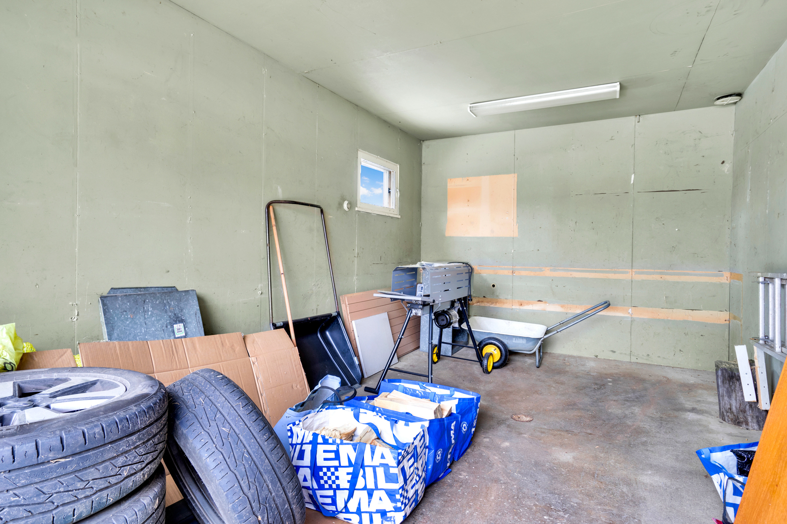 Varasto ja autotalli, talon yhteydessä erillinen autokatos |