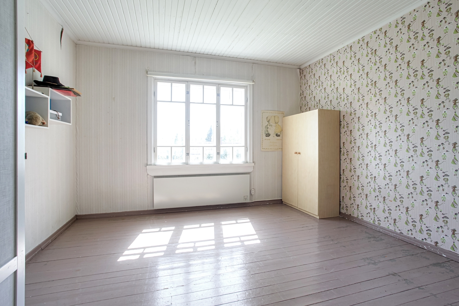 | Makuuhuoneen kuvaus | Lukumäärä: 1, seinät (tapetti), lattiat (laminaatti) |