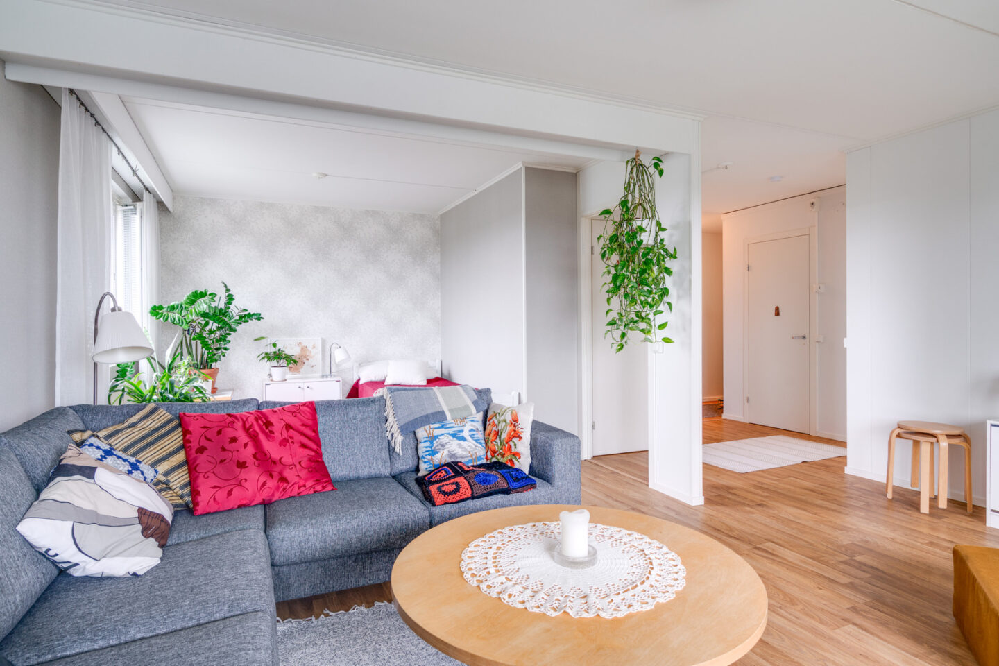 Seinät (maali ja tapetti), lattiat (laminaatti) |