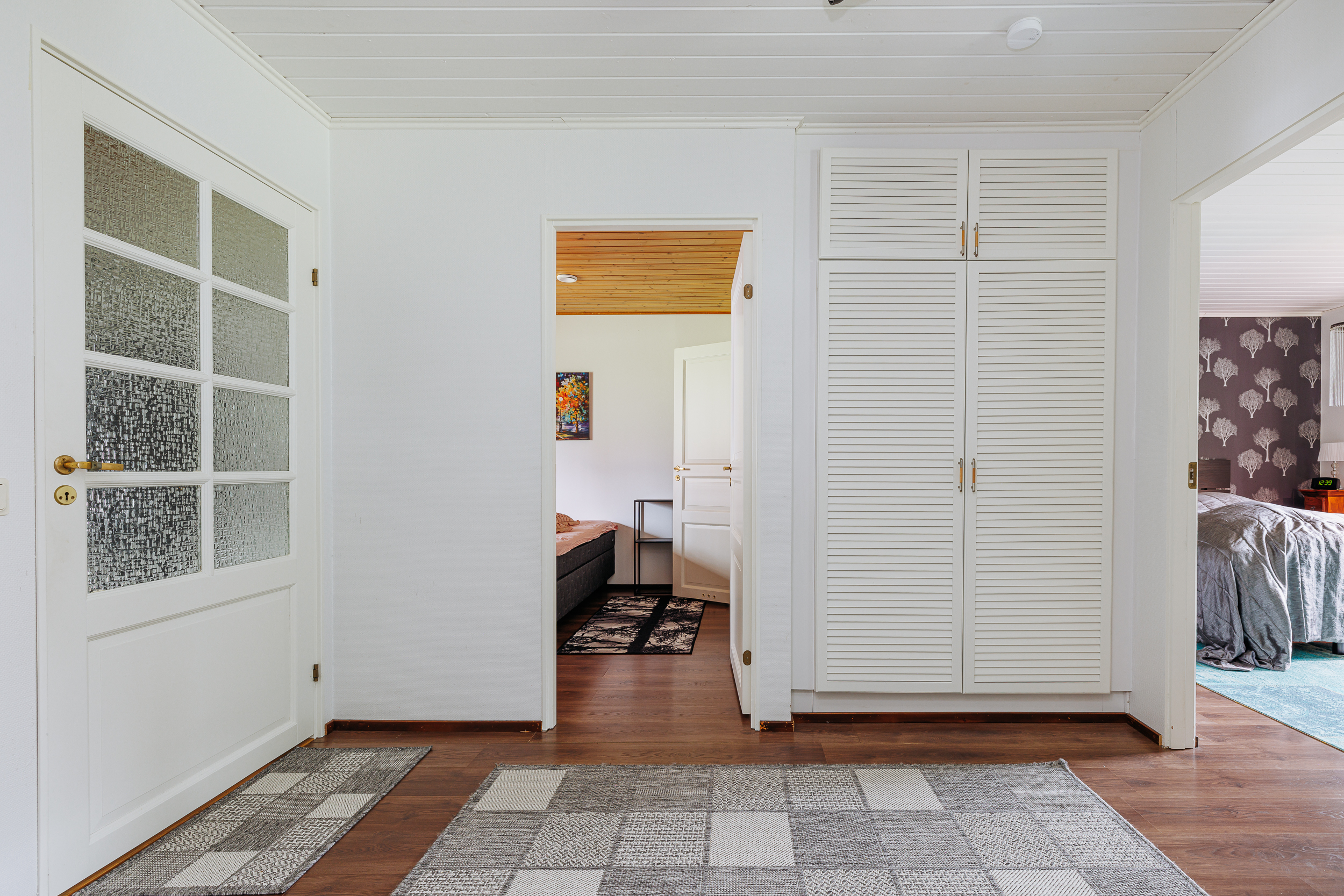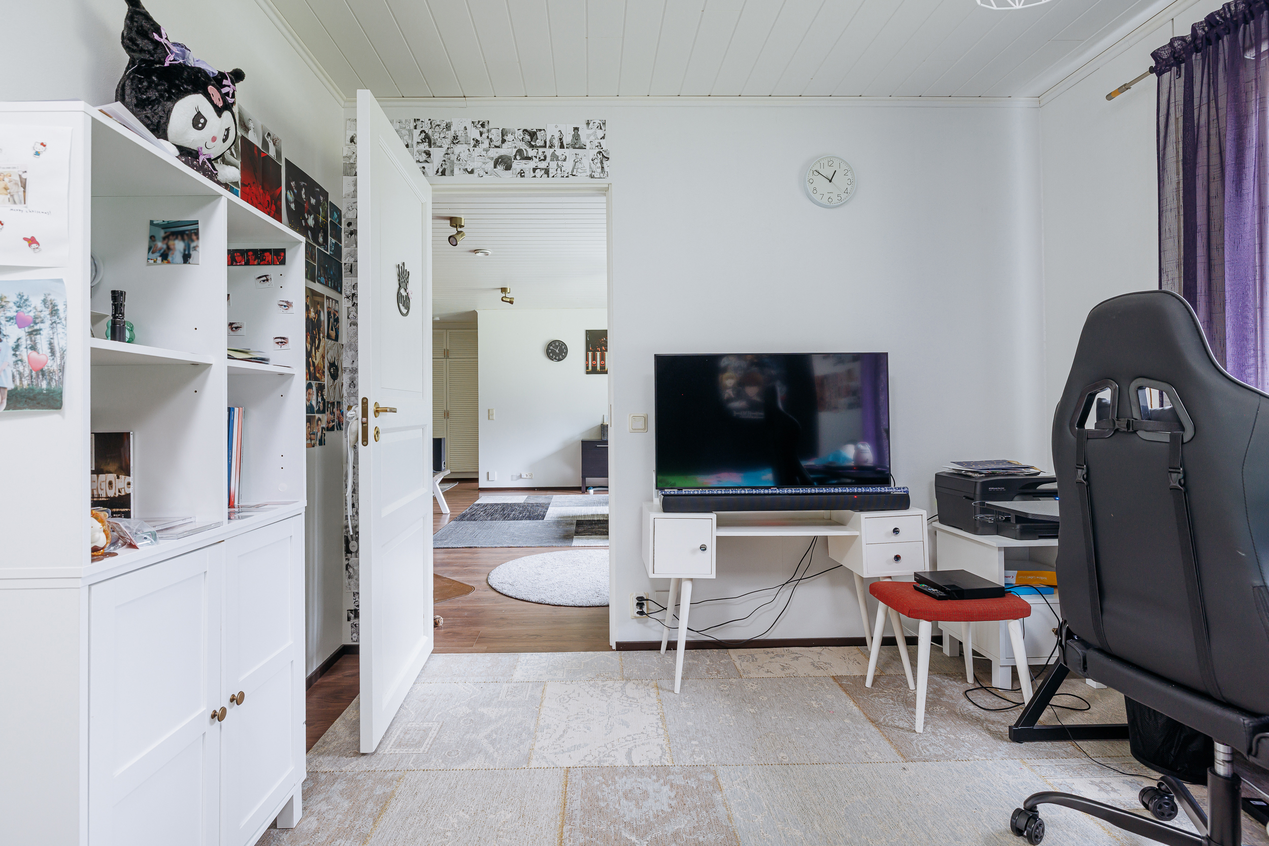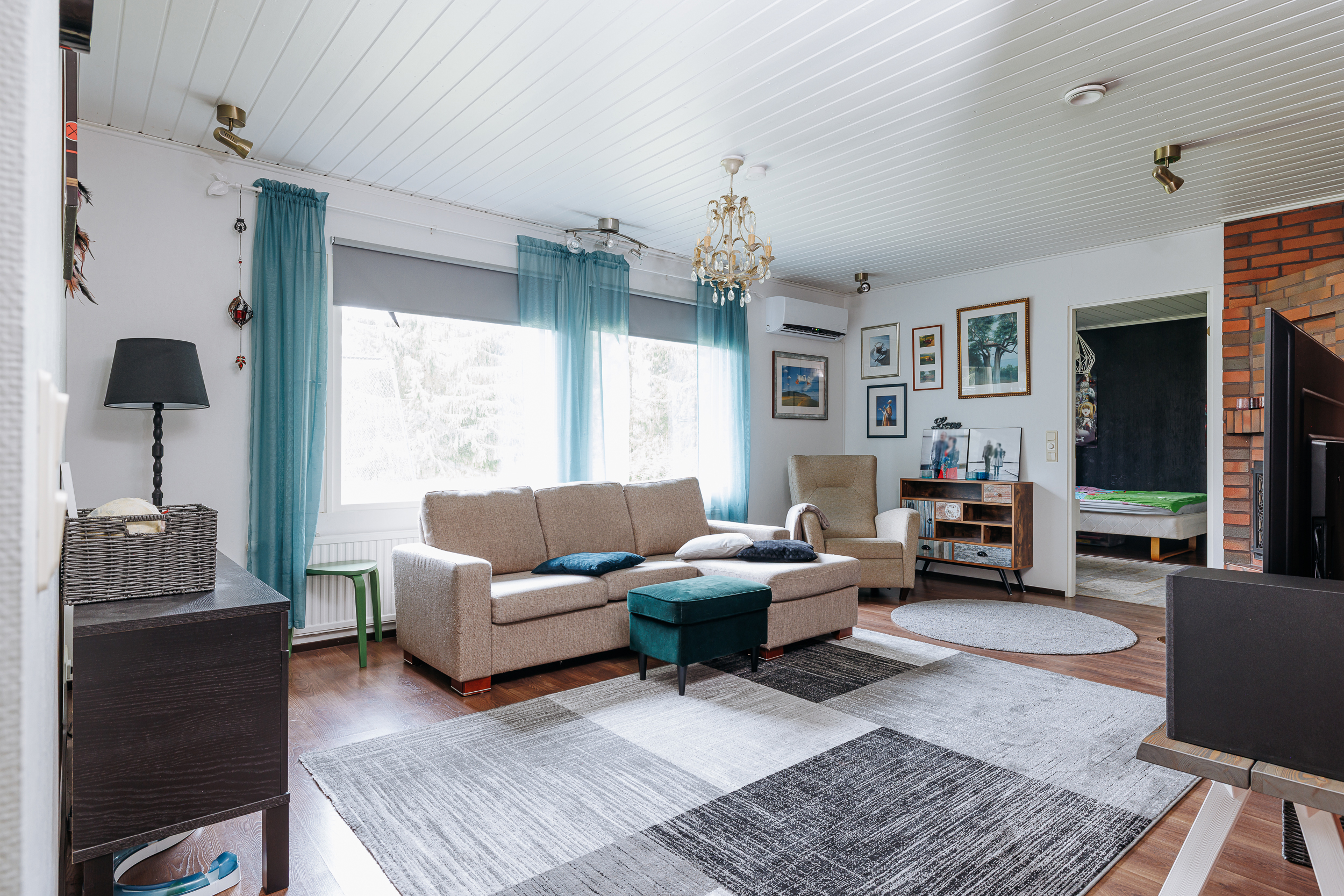 Kolmella makuuhuoneella varustettu koti, jossa lisäksi tilava keittiö ja valoisa olohuone. Pesuhuoneen yhteydessä sauna, jossa heti valmis kiuas. Kodinhoitohuoneessa reilusti kaappi- ja laskutilaa, täältä myös oma kulku ulos katetulle terassille. Olohuoneeseen sijoitettu varaava takka luo tunnelmaa ja lämmittää talvikaudella. Asuinrakennuksen yhteydessä oleva harrastustilaksi muutettu entinen autotalli tuo reilusti lisätilaa ja mahdollistaa harrastamisen tai vaikkapa työskentelyyn kotona.