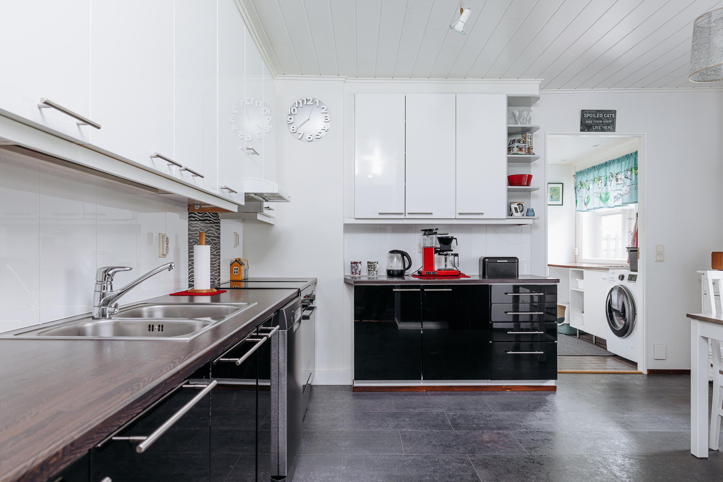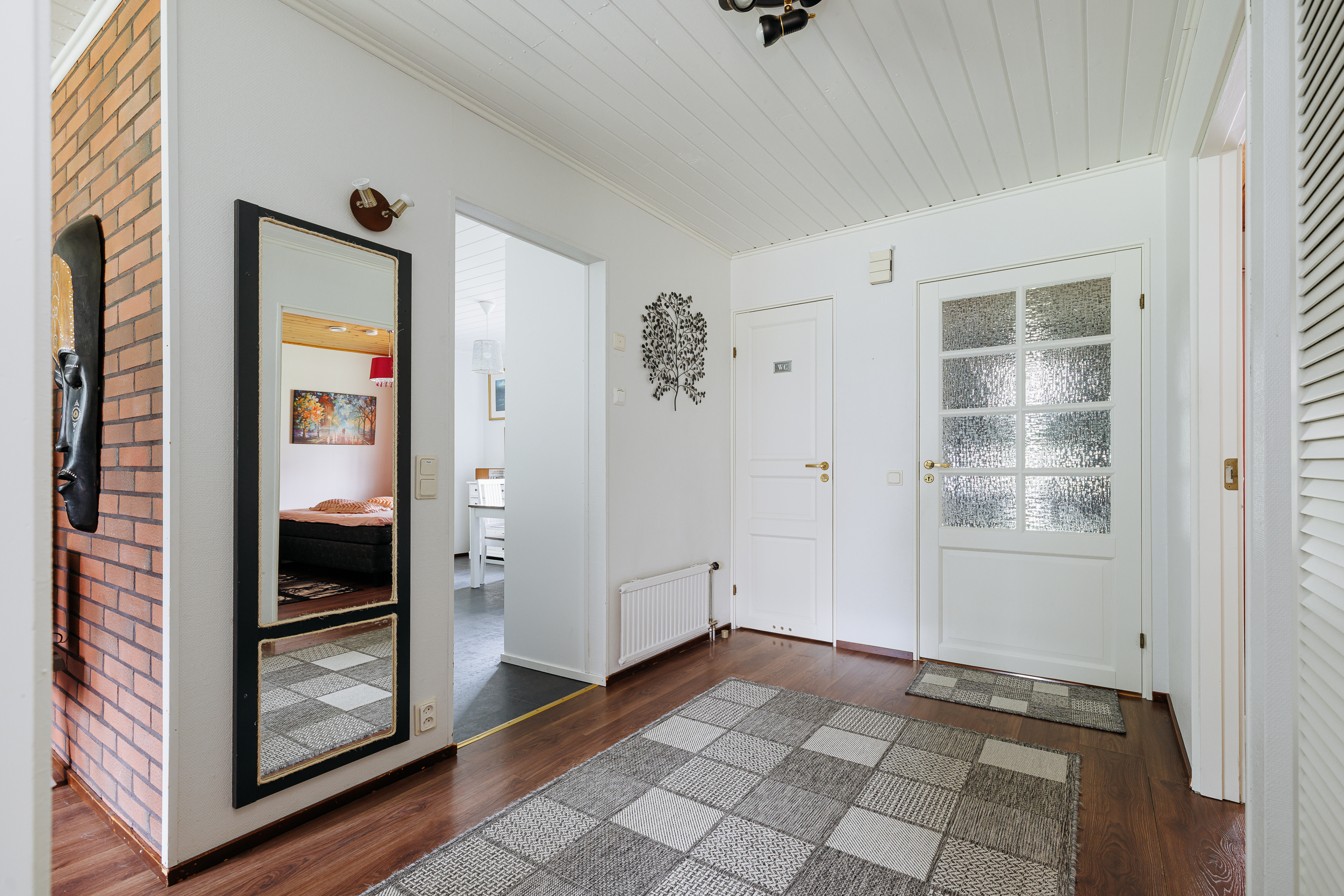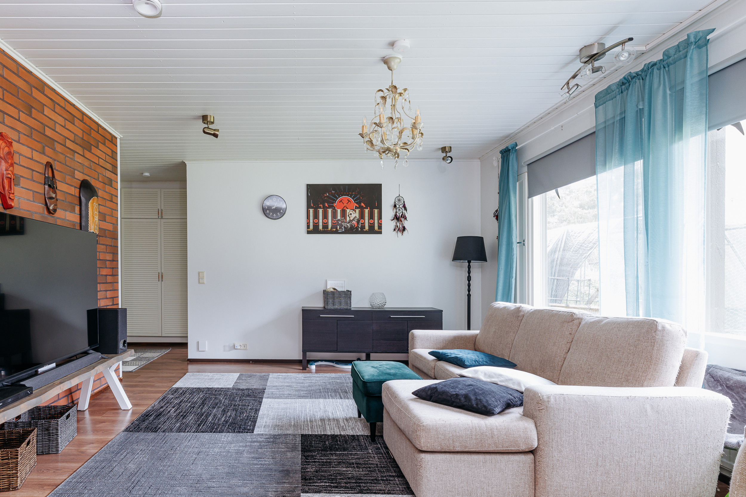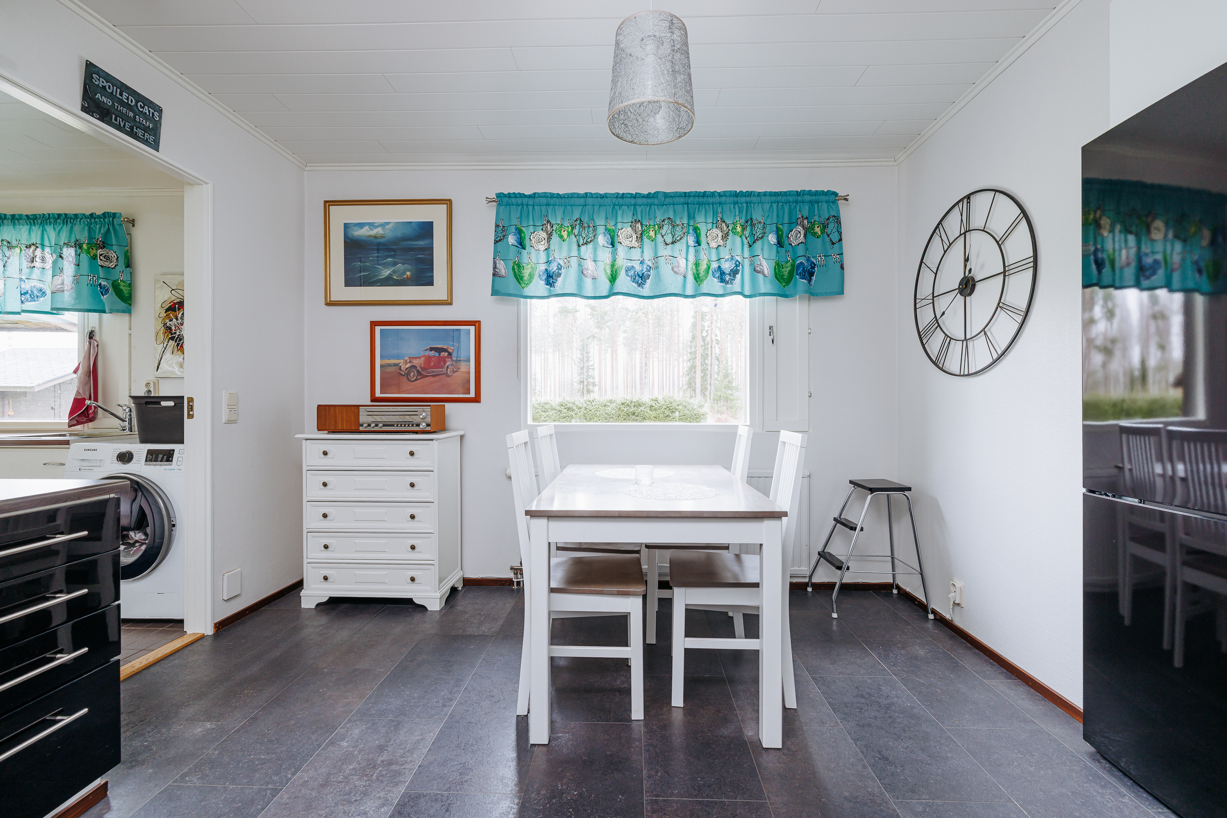 Kolmella makuuhuoneella varustettu koti, jossa lisäksi tilava keittiö ja valoisa olohuone. Pesuhuoneen yhteydessä sauna, jossa heti valmis kiuas. Kodinhoitohuoneessa reilusti kaappi- ja laskutilaa, täältä myös oma kulku ulos katetulle terassille. Olohuoneeseen sijoitettu varaava takka luo tunnelmaa ja lämmittää talvikaudella. Asuinrakennuksen yhteydessä oleva harrastustilaksi muutettu entinen autotalli tuo reilusti lisätilaa ja mahdollistaa harrastamisen tai vaikkapa työskentelyyn kotona.
