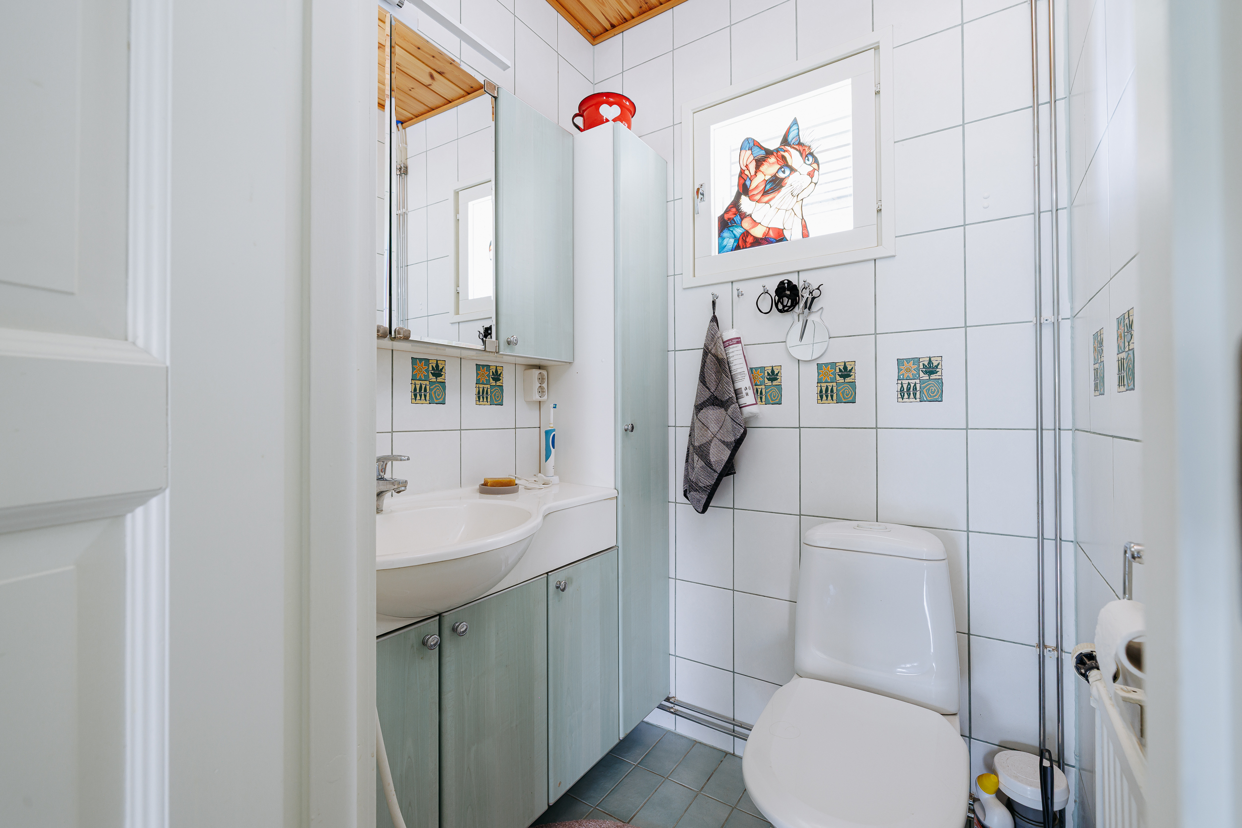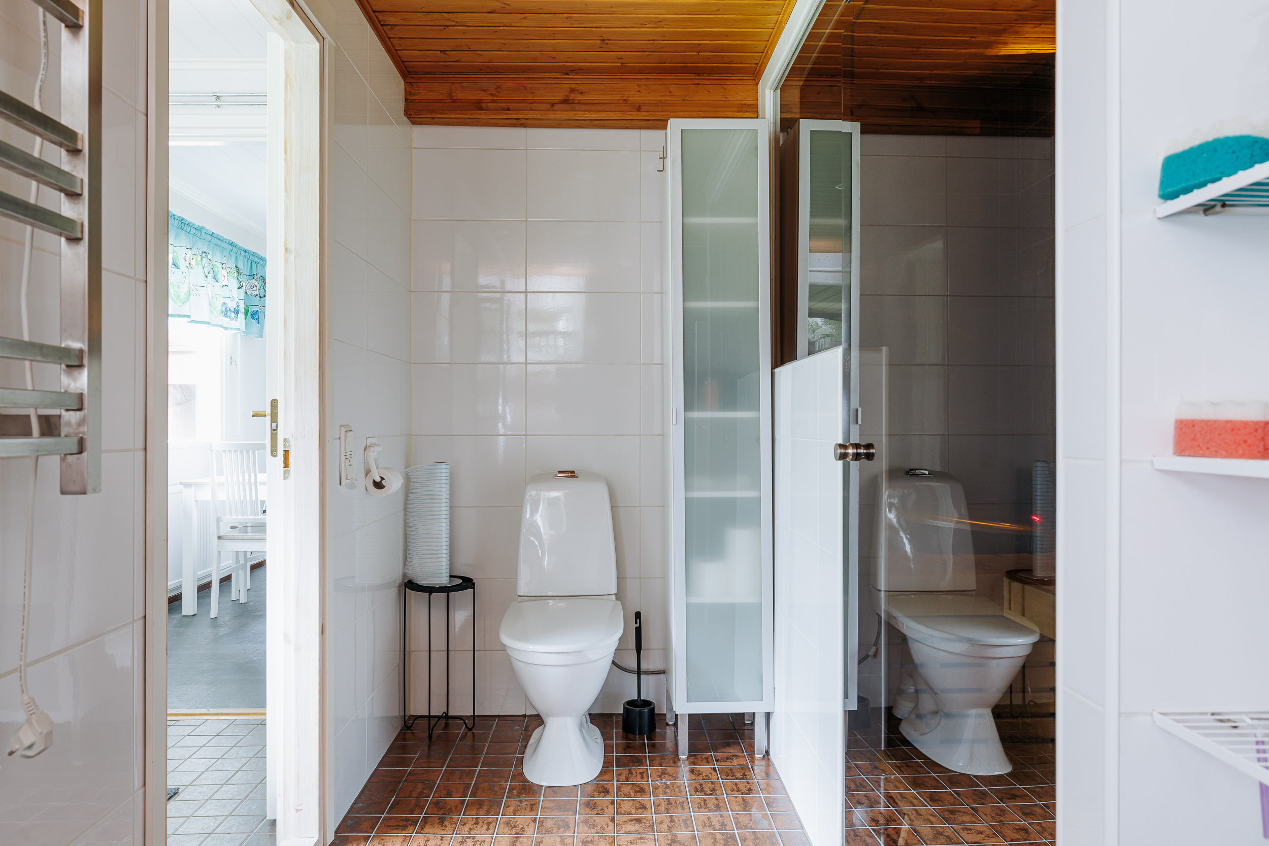 | Kylpyhuoneen kuvaus | WC-istuin, suihku ja lattialämmitys, seinät (kaakeli), lattiat (laatta) |