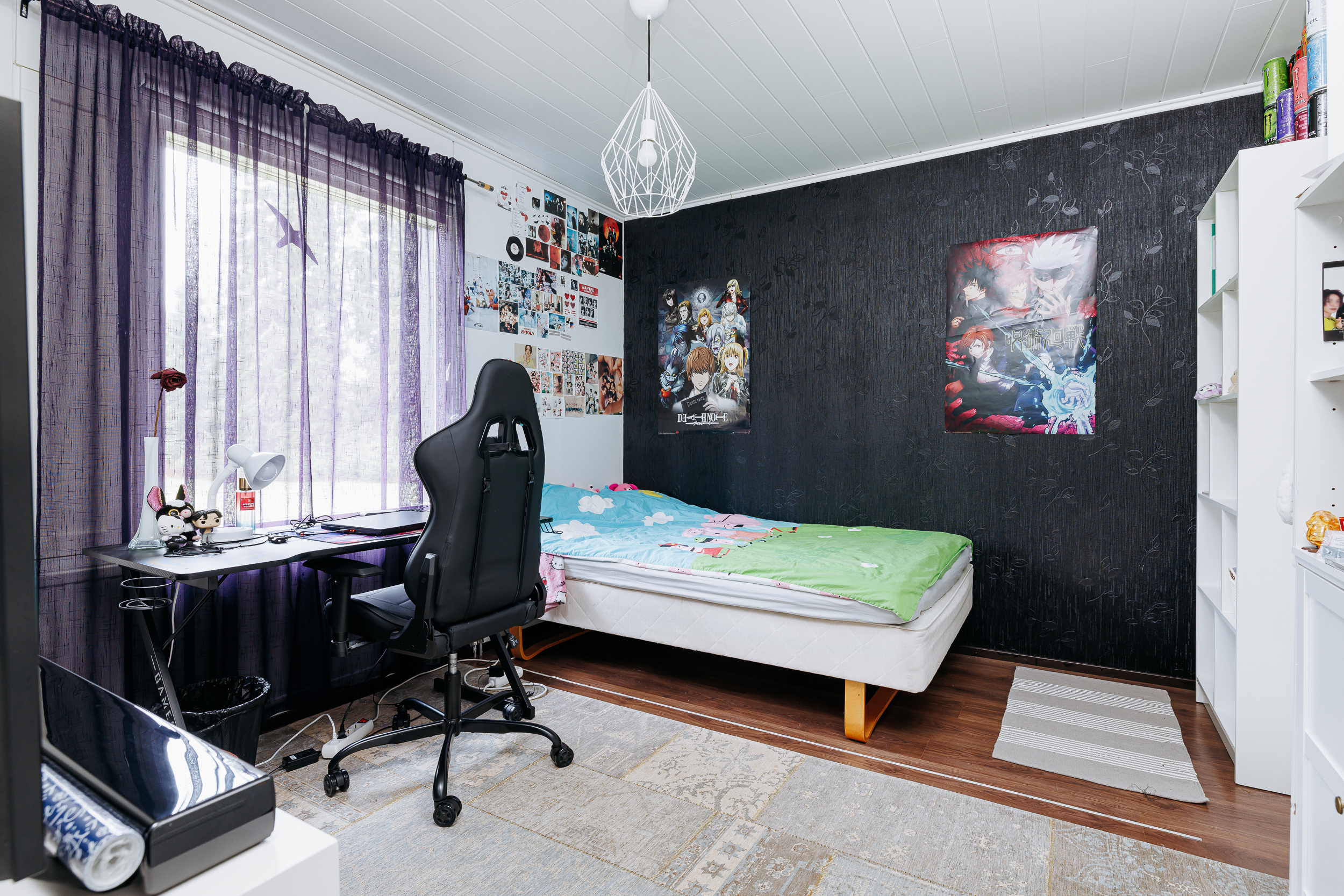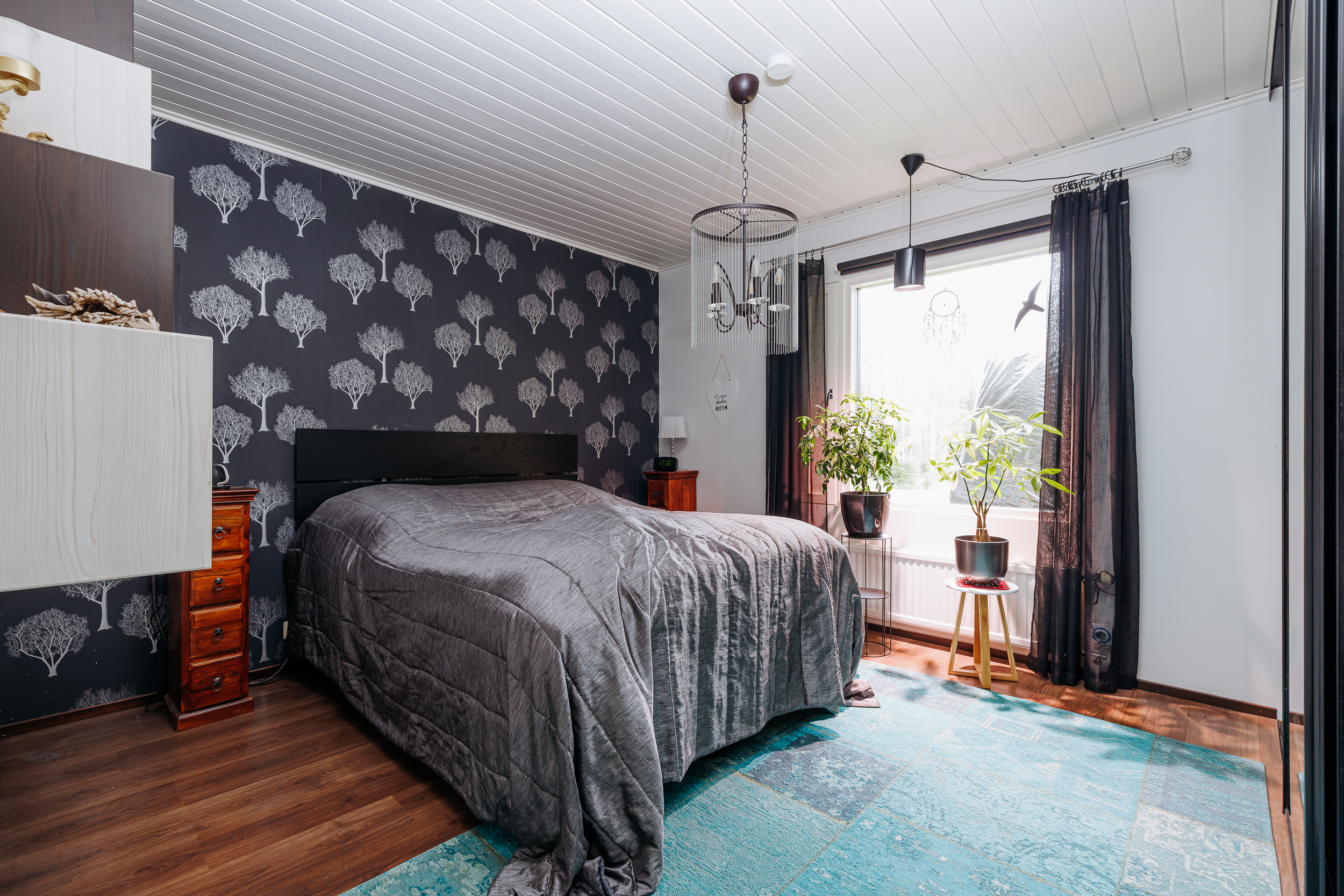 | Makuuhuoneen kuvaus | Lukumäärä: 3, seinät (maali ja tapetti), lattiat (laminaatti) |