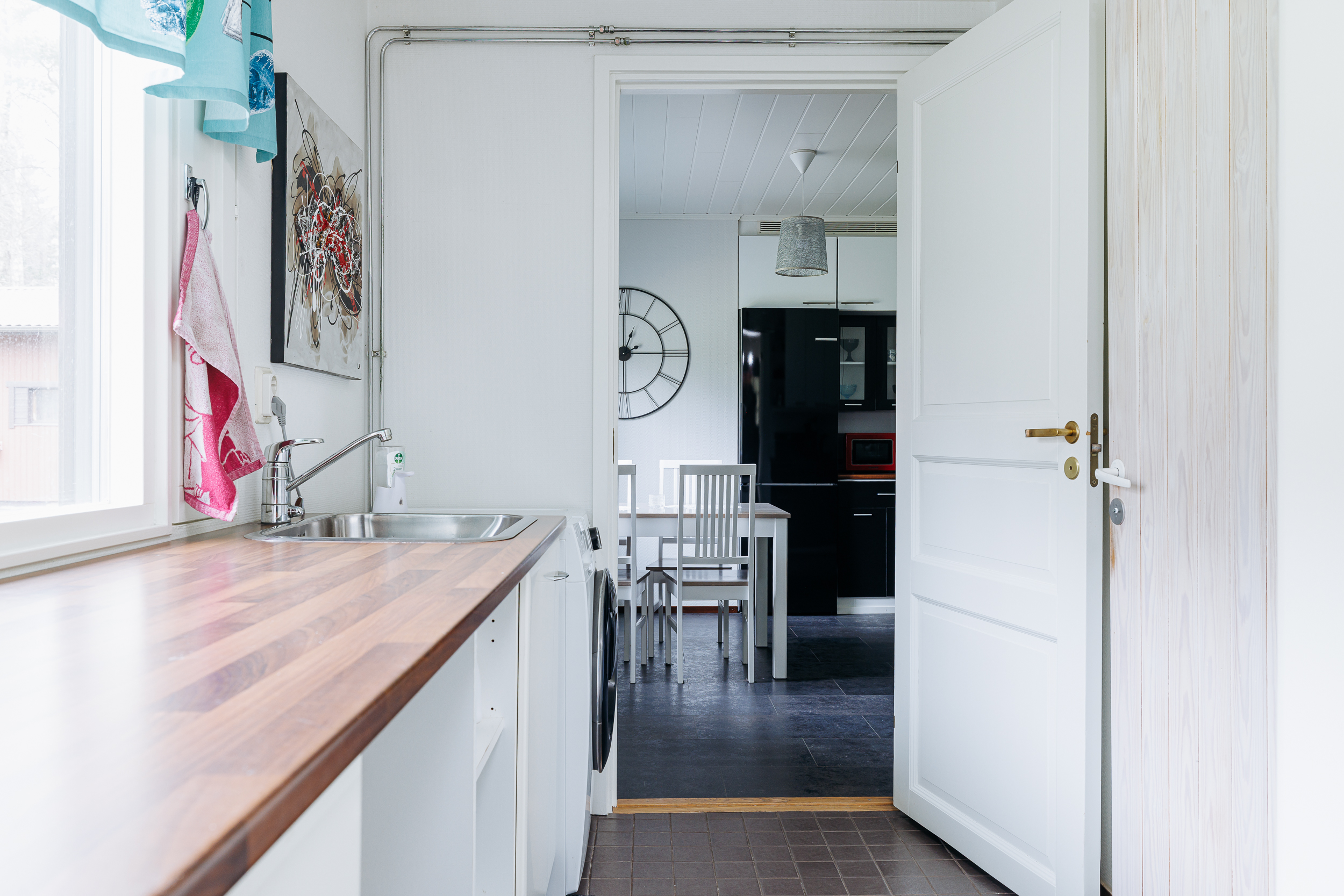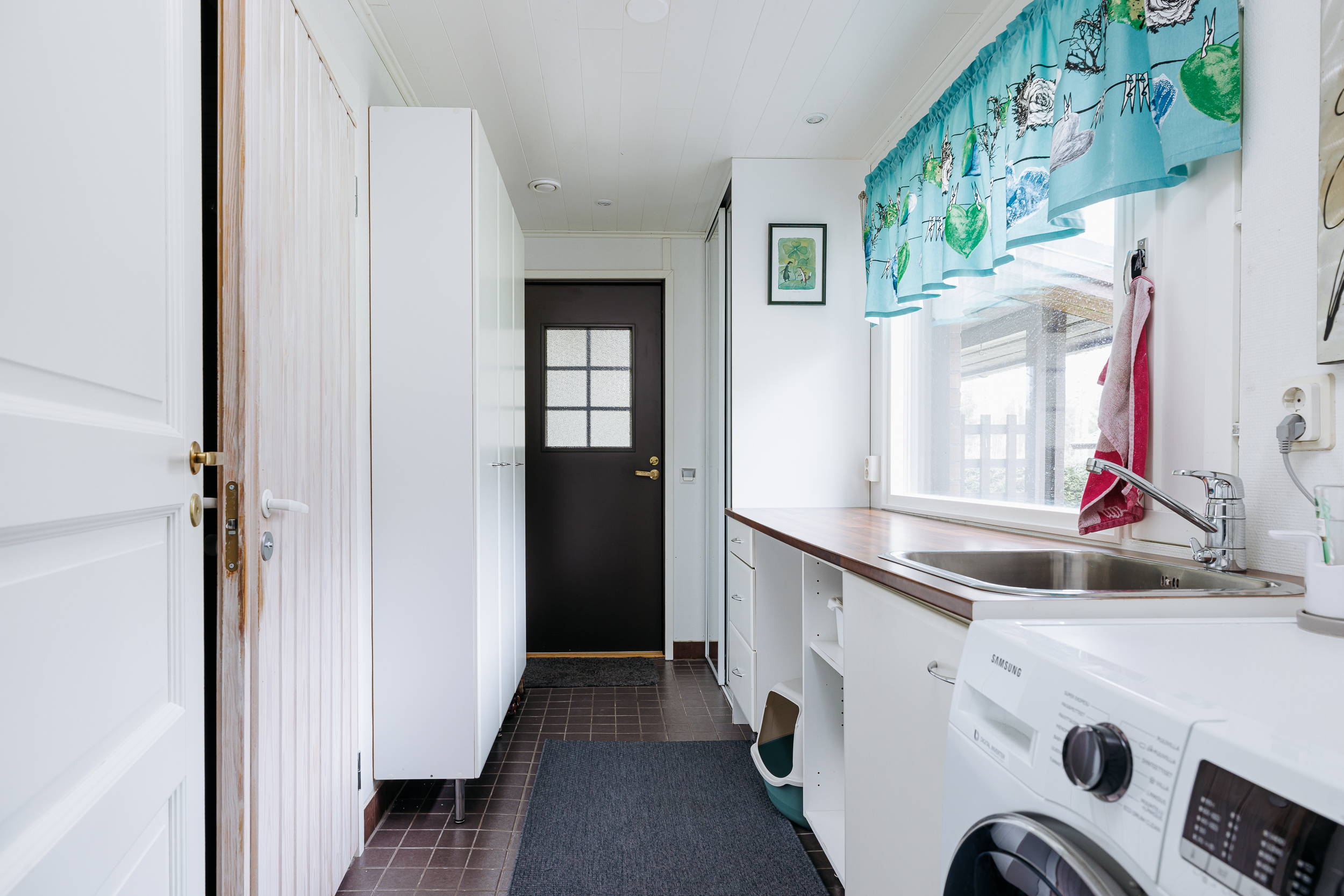 | Kodinhoitohuoneen kuvaus | Pesukoneliitäntä ja lattialämmitys, lattiat (laatta), seinät (maali) |