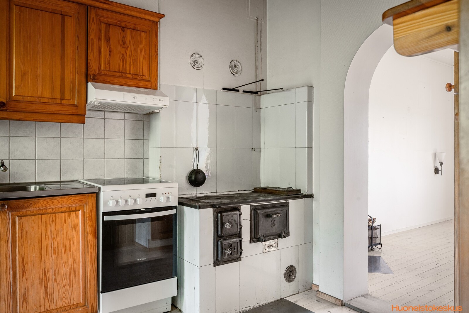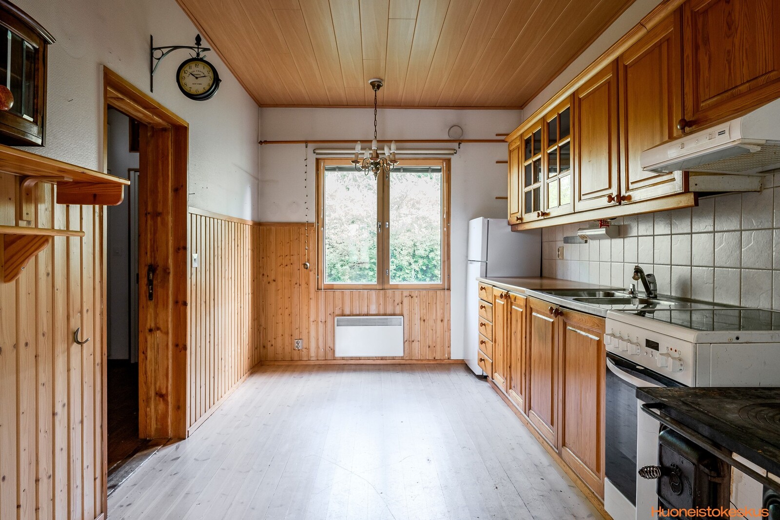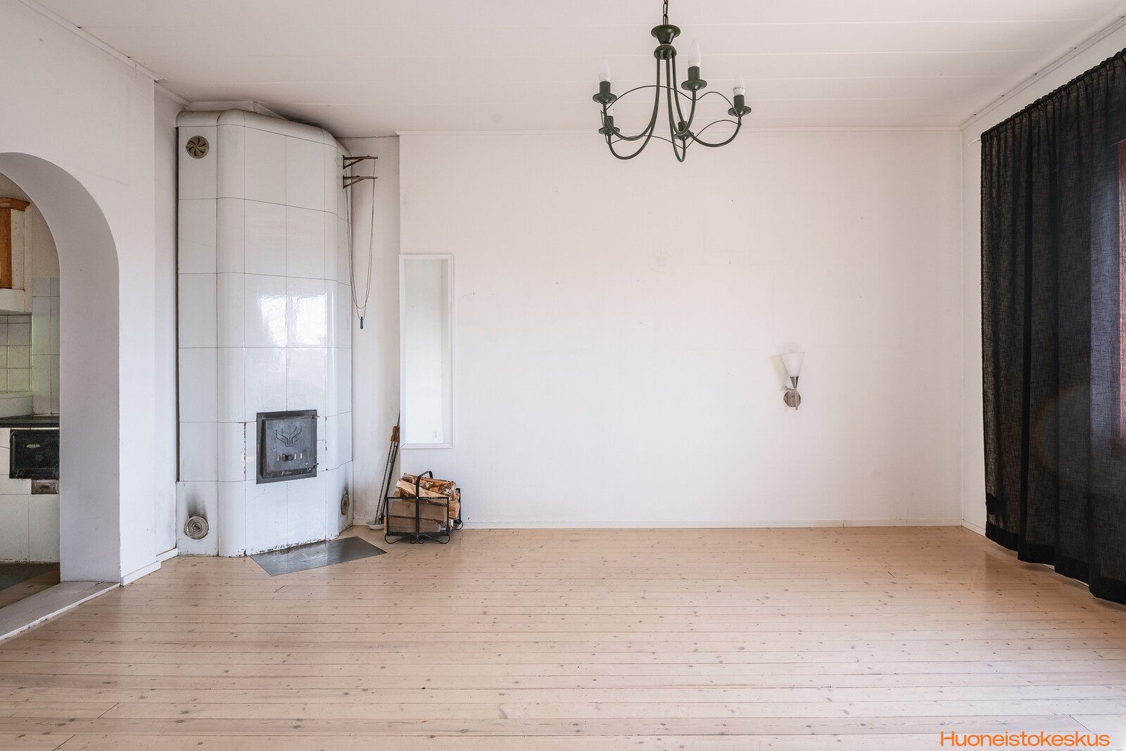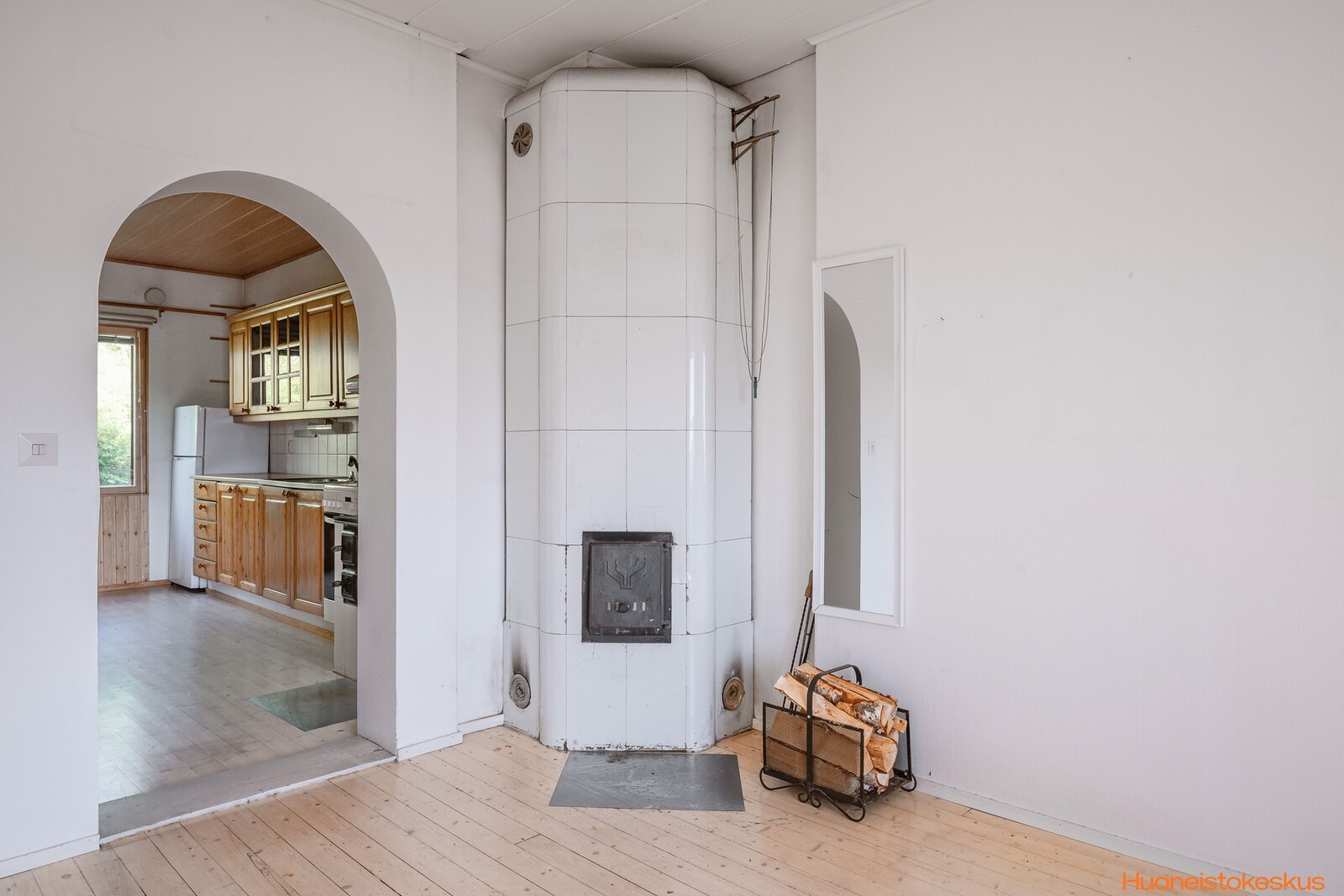 Tilava eteinen, jossa on runsaasti kaappitilaa, toivottaa tulijat lämpimästi tervetulleiksi. Kylpyhuone kaipaa päivitystä, mutta tarjoaa erinomaiset puitteet toteuttaa unelmiesi kylpytilat. Suuressa keittiössä on reilusti tilaa ruokapöydälle, ja kodikkuutta lisää nurkassa seisova puuliesi, joka tuo lämpöä ja tunnelmaa arkeen.
