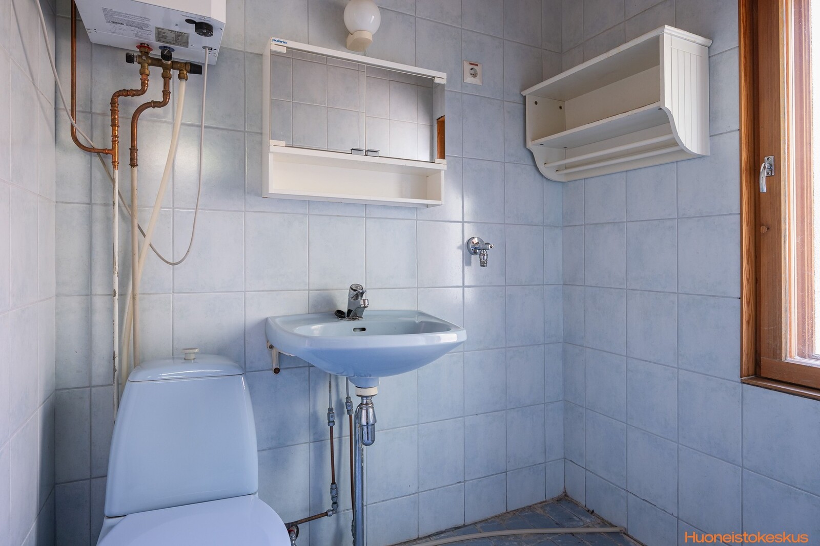 | Kylpyhuoneen kuvaus | WC-istuin, pesukoneliitäntä ja suihku, seinät (kaakeli), lattiat (laatta) |