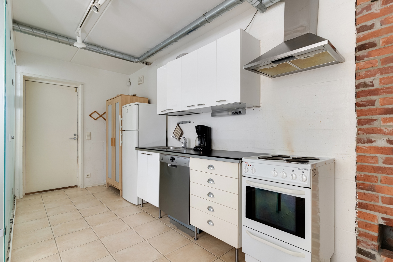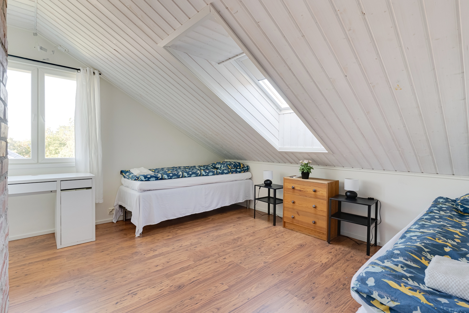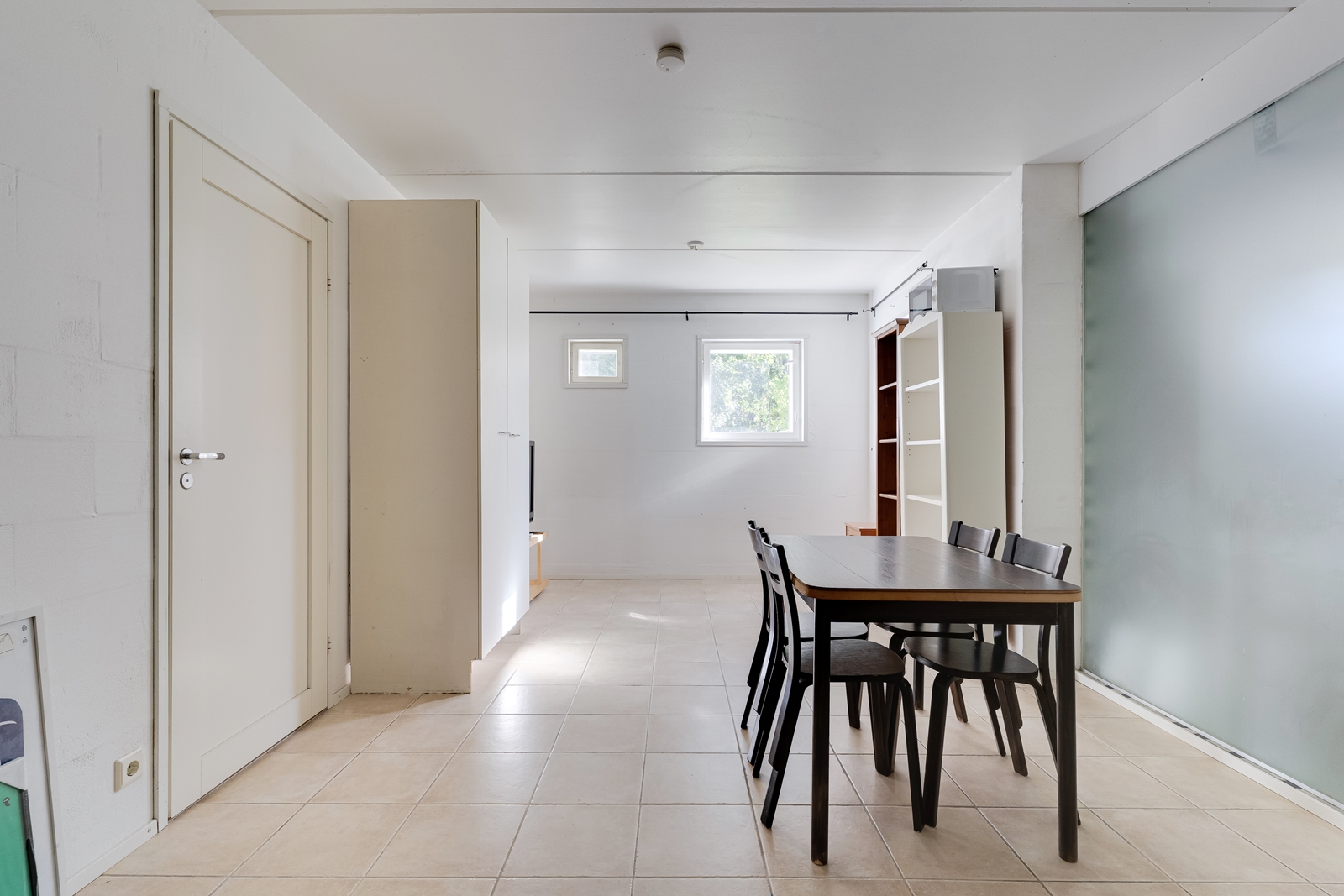 Kellarikerroksessa lisäksi erillinen kaksio, jossa pieni keittiö, kylpyhuone ja oma sisäänkäynti.