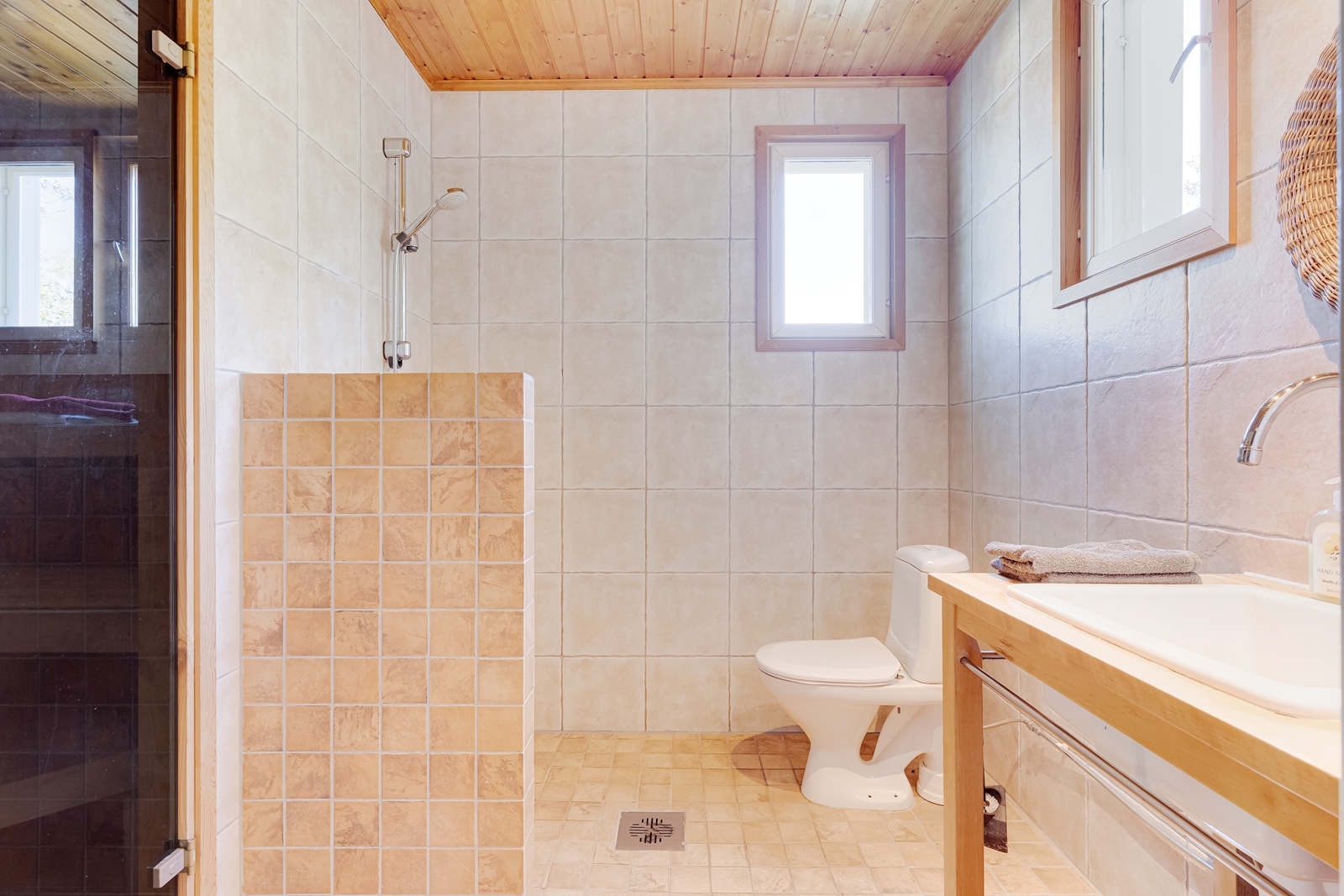 WC-istuin, suihku ja lattialämmitys, seinät (kaakeli), lattiat (laatta) |