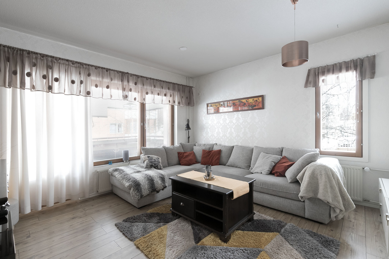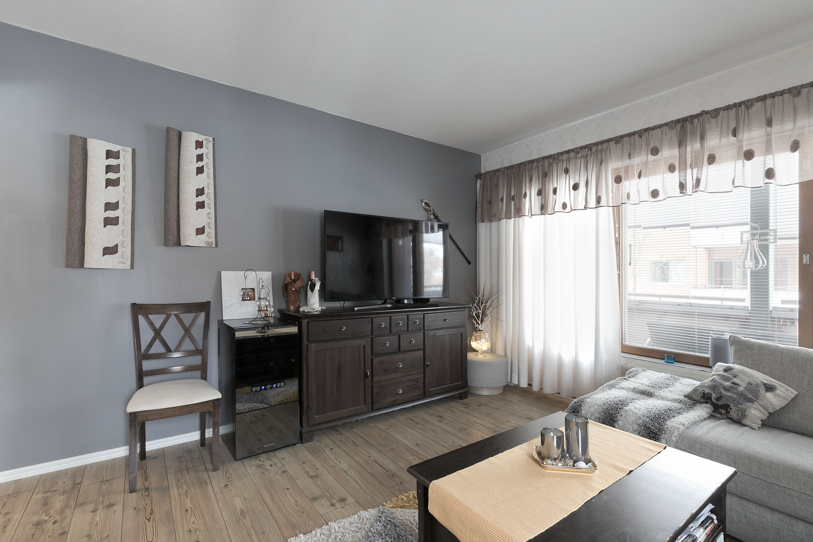 | Olohuoneen kuvaus | Seinät (tapetti ja maali), lattiat (laminaatti) |