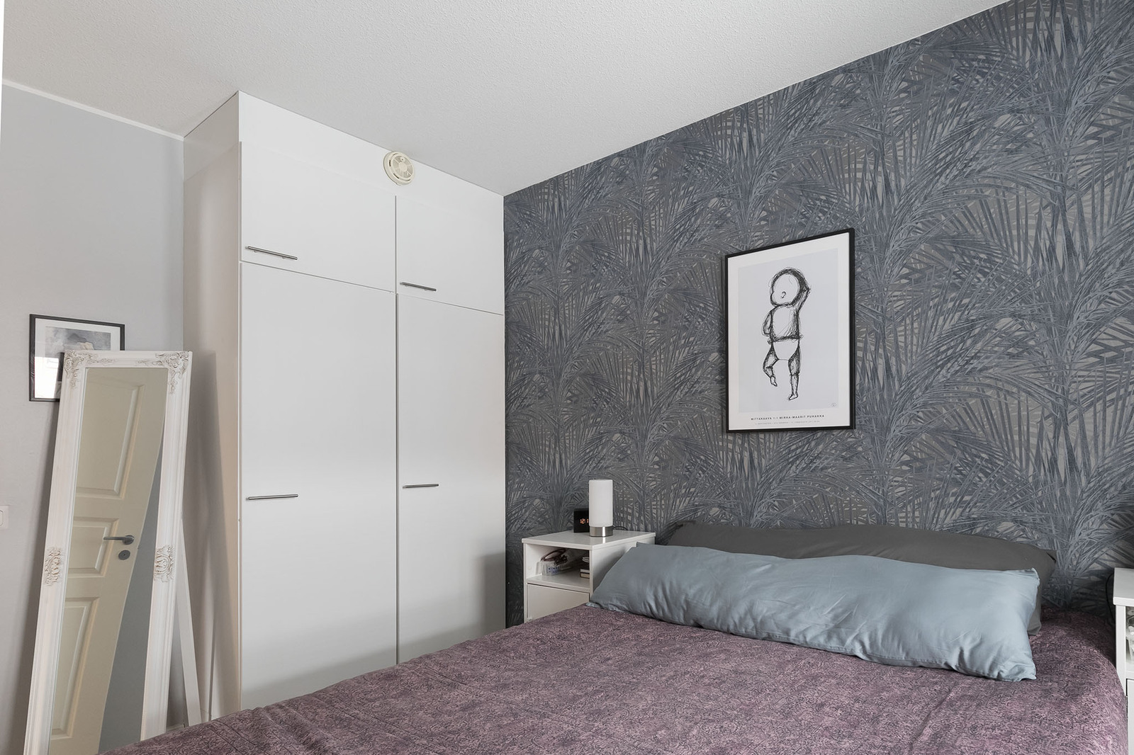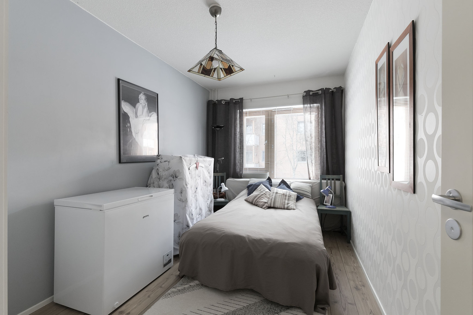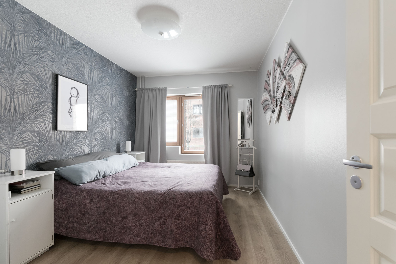 | Makuuhuoneen kuvaus | Seinät (tapetti ja maali), lattiat (laminaatti) |