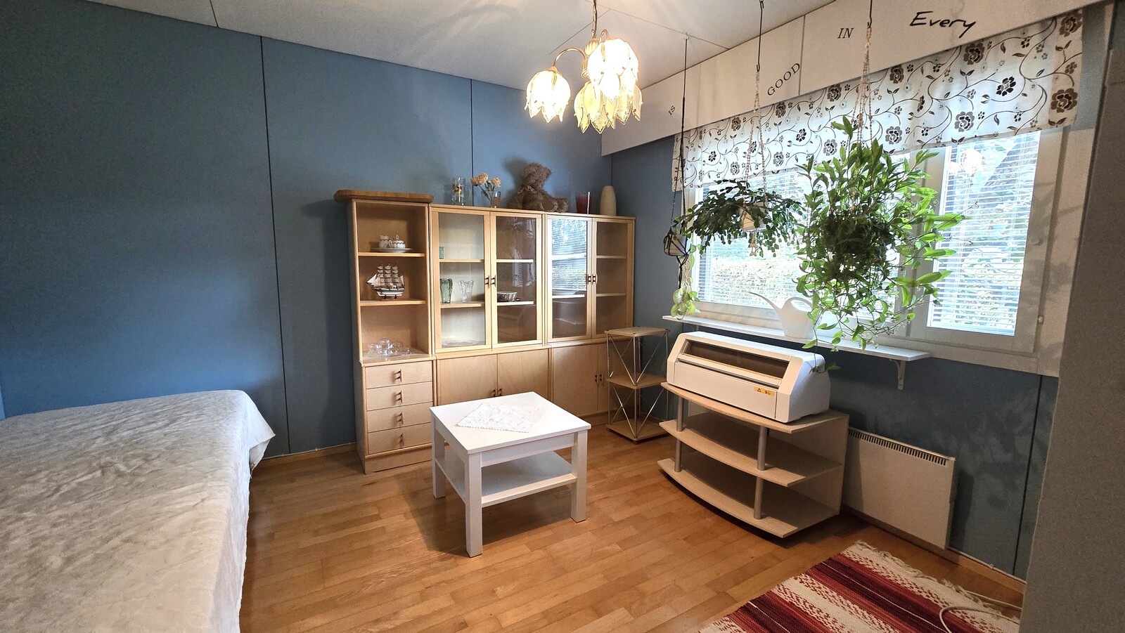 Seinät (maali ja kivi), lattiat (parketti) |