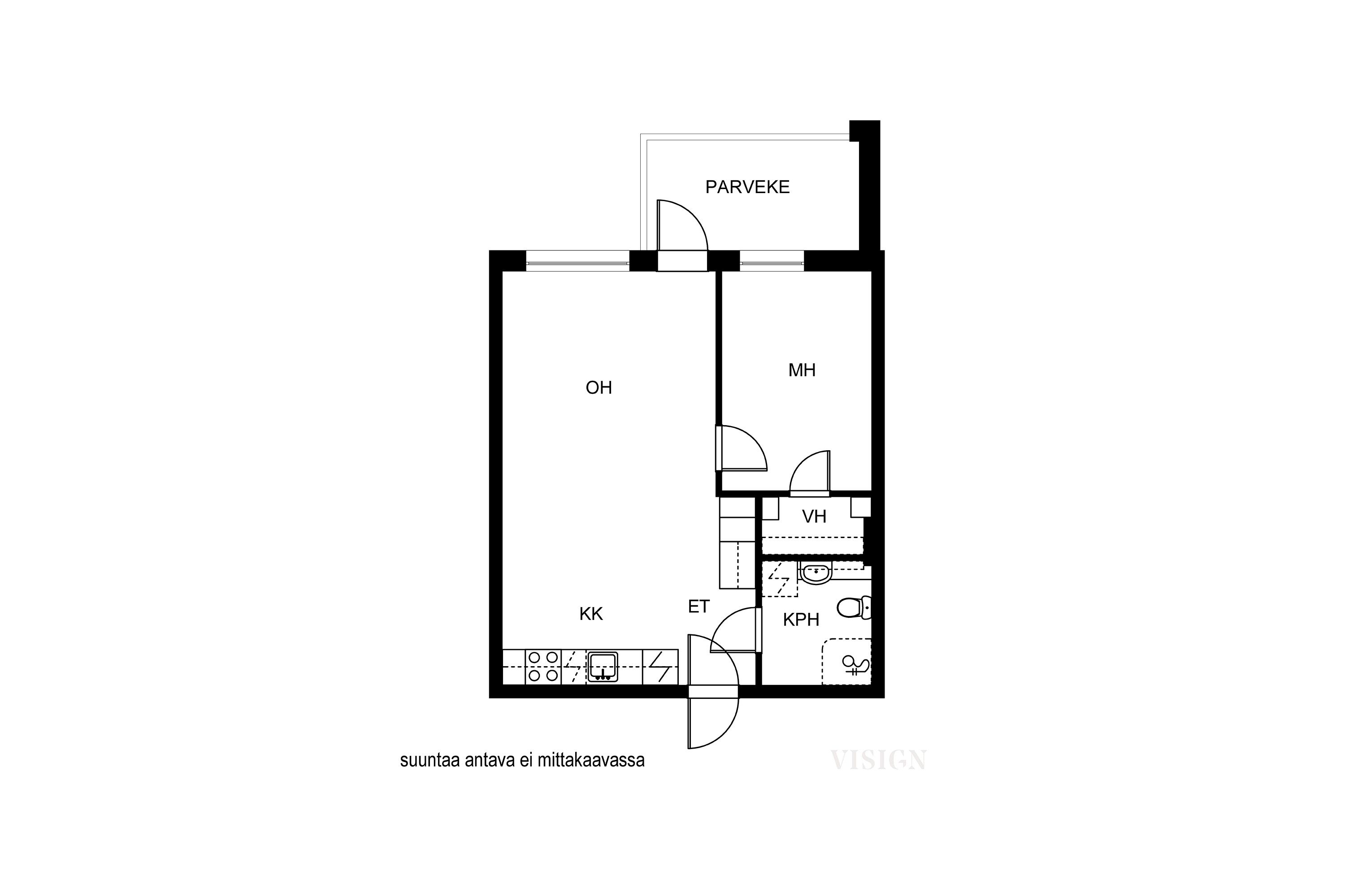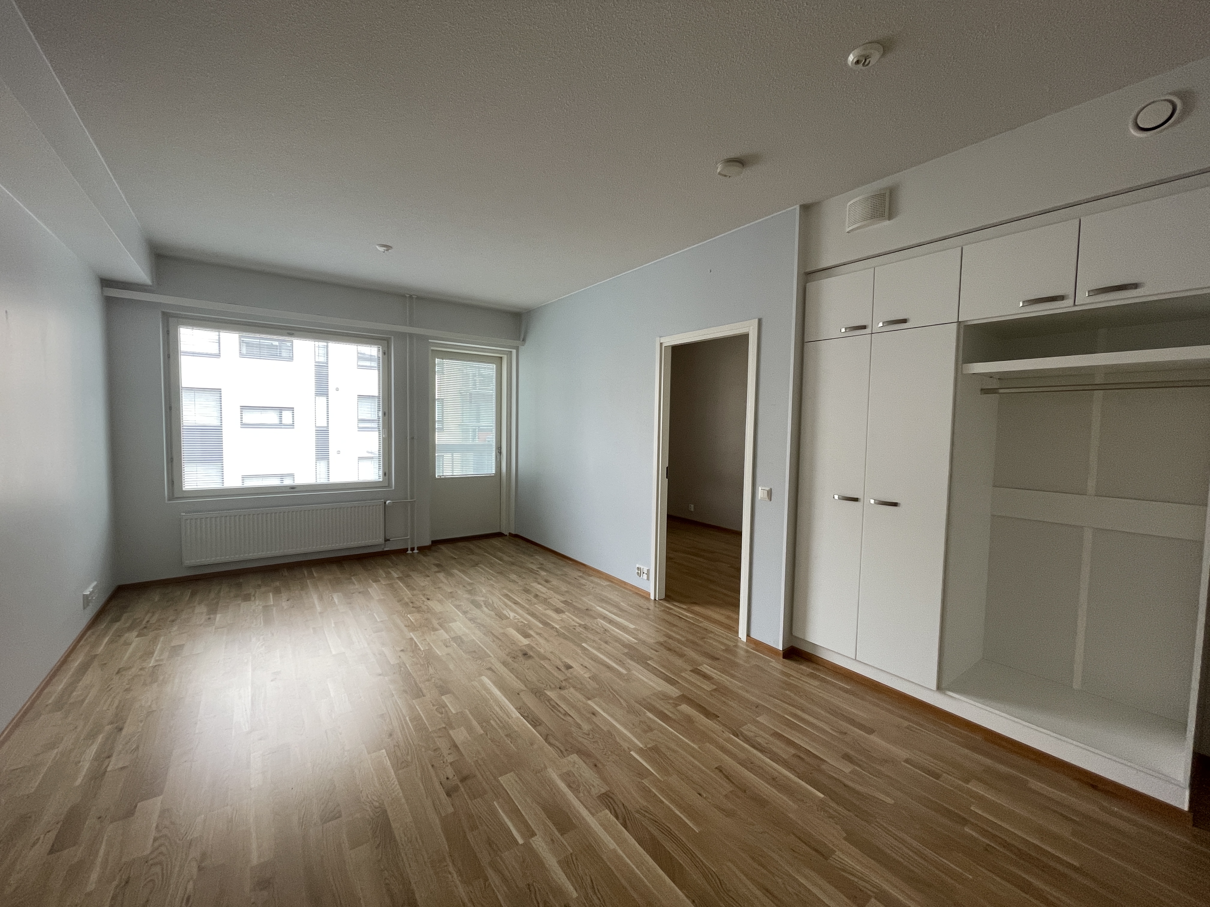 Suositussa Kiela korttelissa myytävänä valmiiksi vuokrattu kaksio, jossa lasitettu parveke.