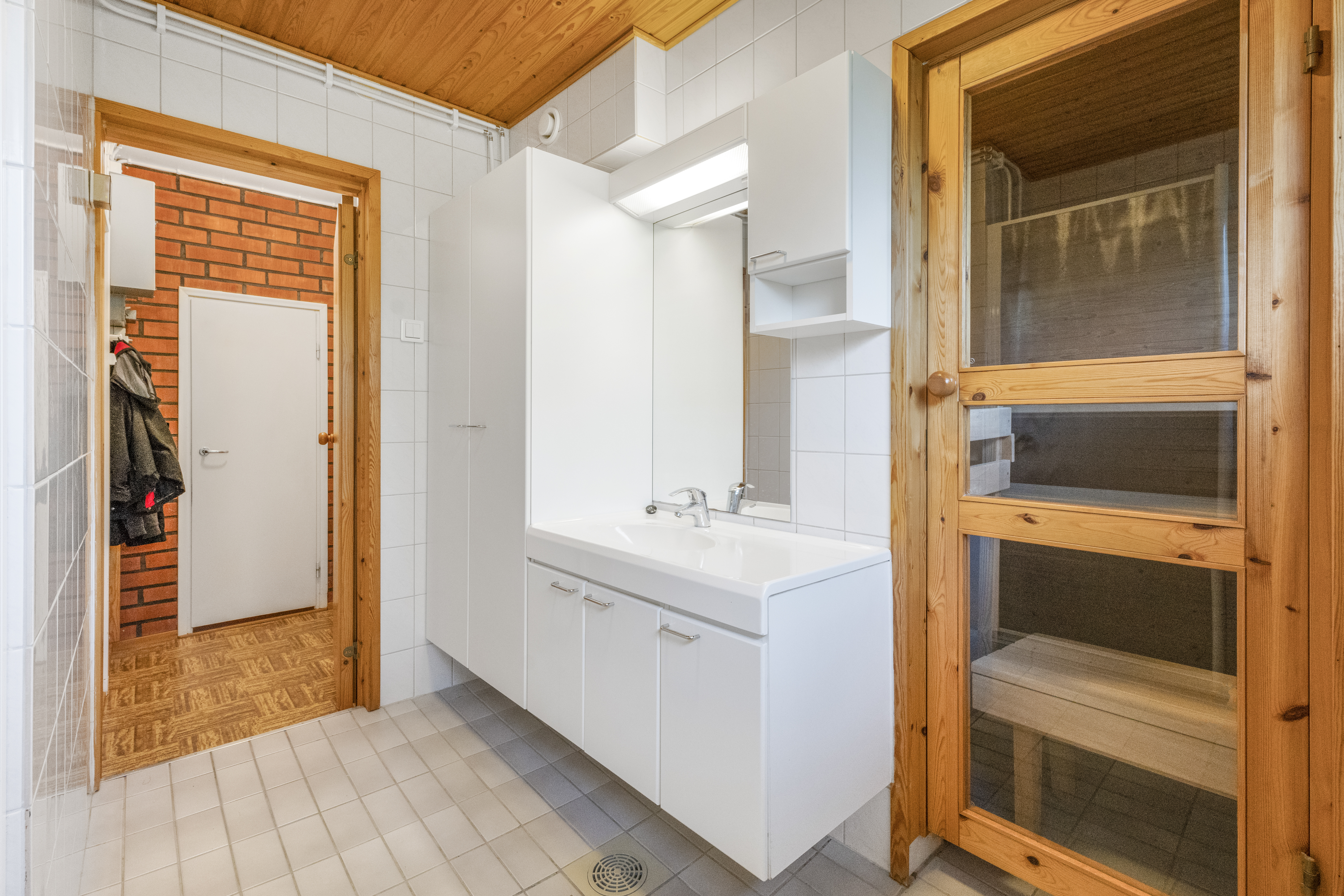 Talon tilat ovat käytännölliset: kaksi makuuhuonetta, tilava olohuone, keittiö sekä sauna, joka tarjoaa mukavat puitteet rentoutumiselle. Lisäksi erillinen wc ja kylpyhuone helpottavat arjen sujuvuutta. Autotallista rakennettu kaksi ns. varastoa, josta toinen on ollut “työhuone käytössä”.