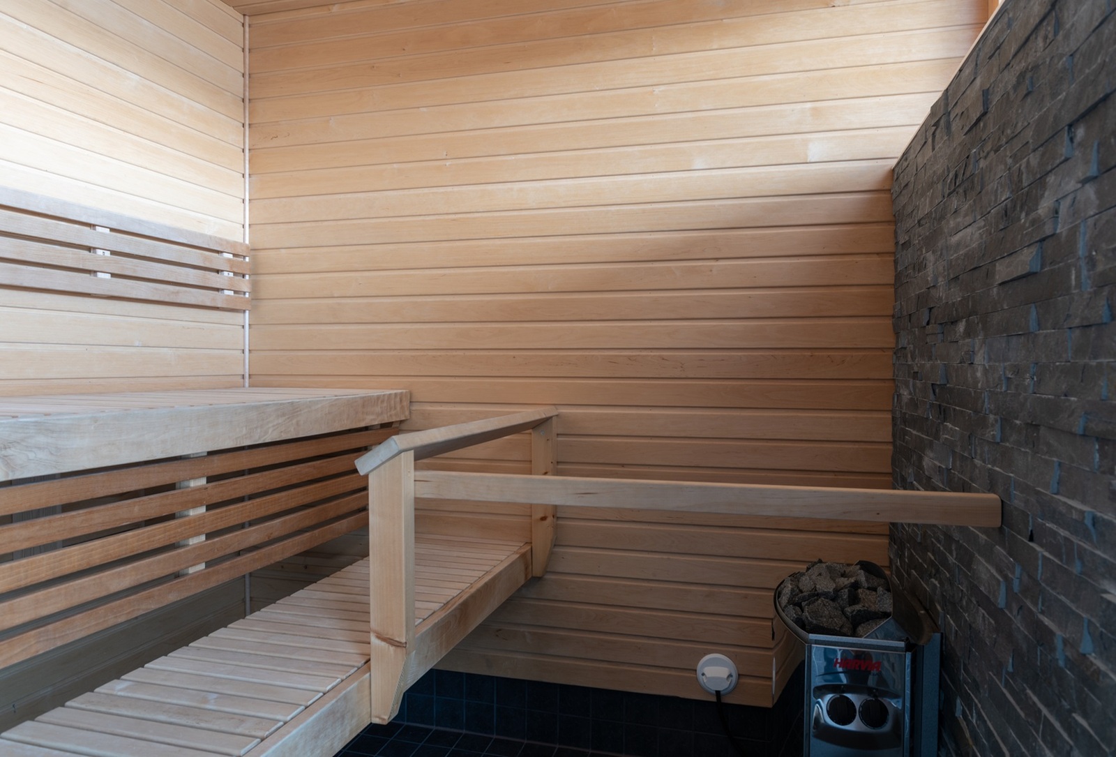 | Saunan kuvaus | Seinät (puu), lattiat (laatta), Sähkökiuas |